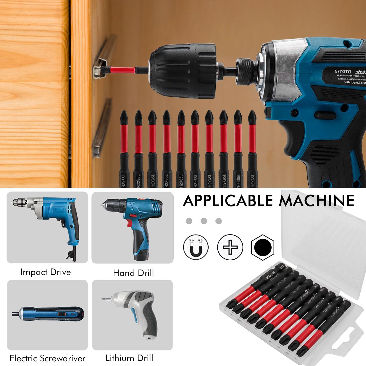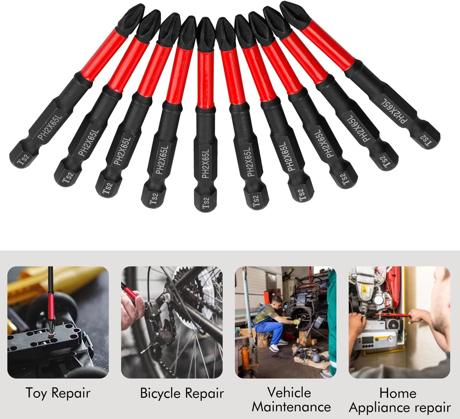 Gasea 10 Pack Phillips PH2 Magnetic Screwdriver Bit Set, 2-1/2" Length Anti-Slip Impact Drill Bits for Furniture Assembly, Machinery Maintenance