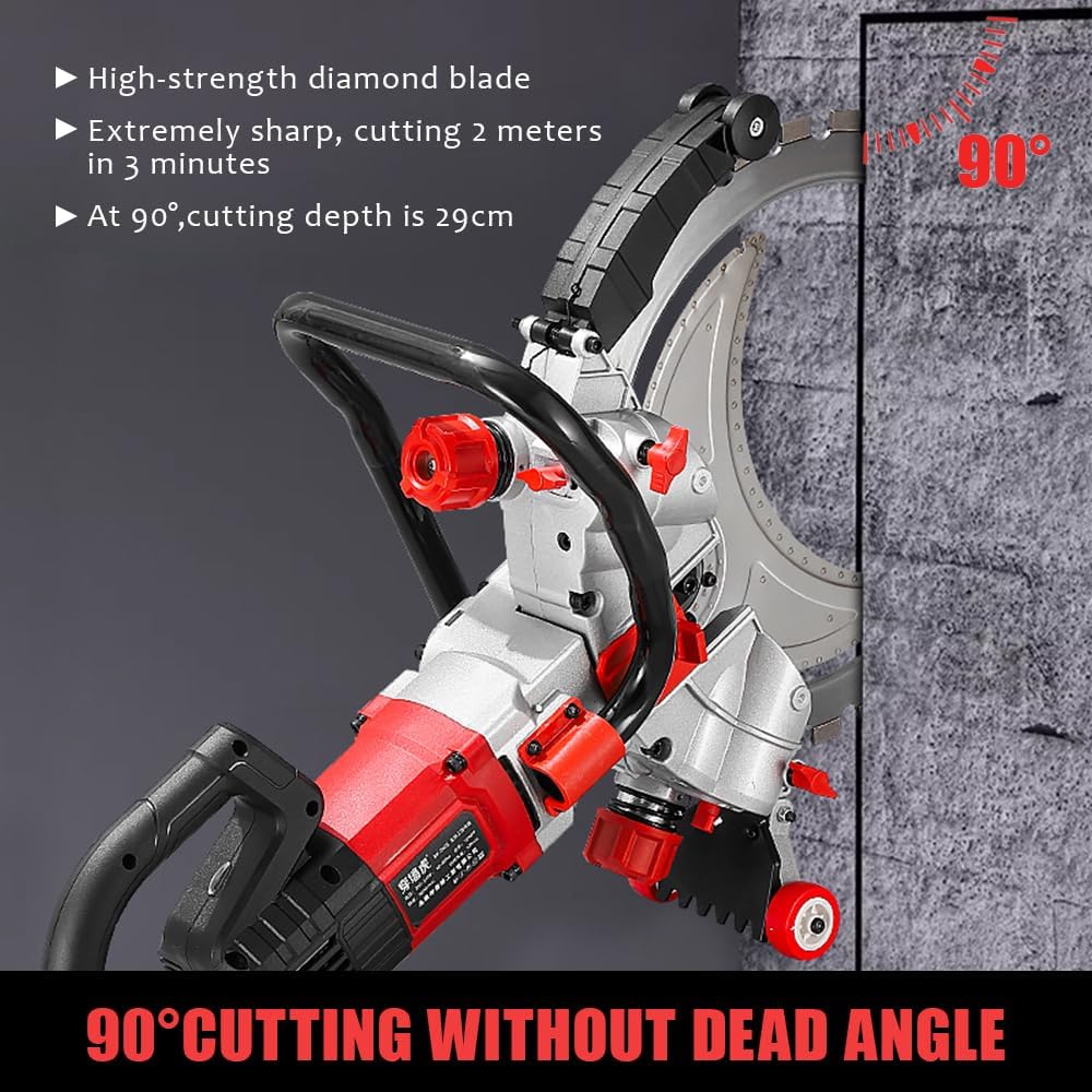 Electric Cut Off Saw Material: ABS Plastic, Power: 8,980 Watt No Load Speed: 3,000 r/min Blade Diameter: 16" Adjustable Angle: Yes Dust Port: Yes Blade Included: Yes Water Line Attachment: Yes Max Cutting Depth: 11.5" Guide Roller: Yes Overall Dimension: 32"(L) x11.8"(W) x 24"(H) Total Weight:14.5KG Packing list Power Circular Saw x 1 Water Feed Attachment x 1 16" Blade x 1 Manual x 1