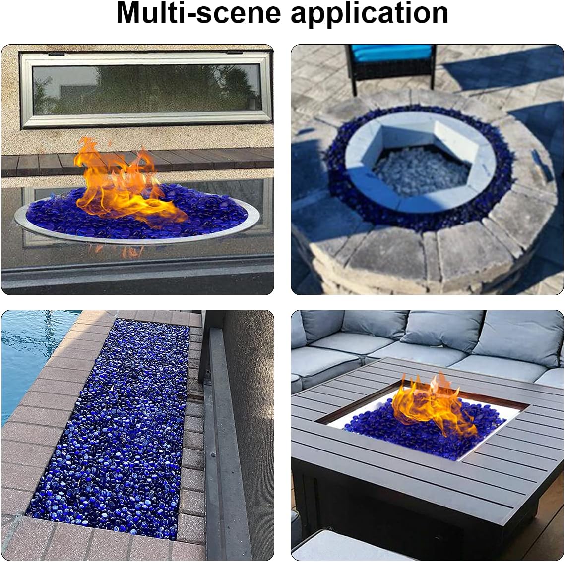 18 Pound Fire Glass Beads Fireglass Drops Flat Glass Beads for Gas Fire Pit Fireplace Cobalt Blue Luster Reflective Decorative Glass Gems for Vase Fillers Aquarium Fish Tank DecorationSpecifications: 18 Pound Smooth round glass beads size 3/4" in diameterHOW MUCH DO YOU NEED?A 18lb pack of this fire glass beads will cover around 2.2 sq. ft. with depth of 1 inch.Rinse the glass beads before first use. Glass should be thoroughly dry before use.Fire Glass for Fireplace Fire Pit:Our fire glass is a Brilliant and Stylish addition for any fire feature from your indoor fire place, outdoor fire pit, fire bowls, landscape glass and more, replacing traditional Gas Logs and Lava Rocks for a Modern, Elegant look! Our Fire glass will not melt, degrade or emit toxic fumes. There is also no soot, ash or smoke.Use fire glass for :fire pits, fireplaces, decoration - safe yo use and looks great--- Fire Glass Beads Fireglass Drops Flat Glass BeadsAdd an extra beautiful: in flower arrangements, water features, walkways, walls or exposed aggregate flooring, around swimming pools it could also be used to as an accent to an aquariums, water gardens, ponds, and terrariums. Add an extra beauty in your garden or just outside your house. This is a perfect home decor and a creative interior and exterior design ,helps you keep clean and nice all of your decoration places.