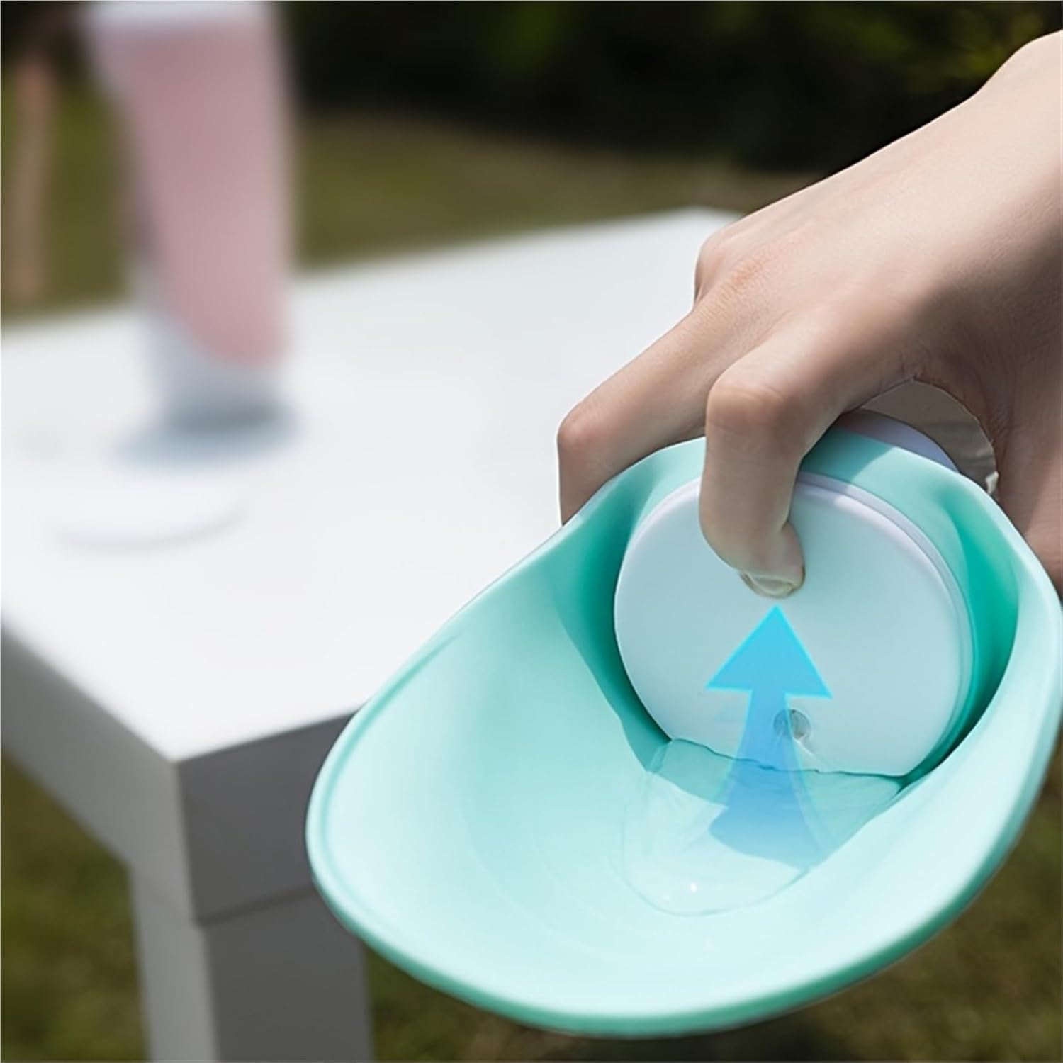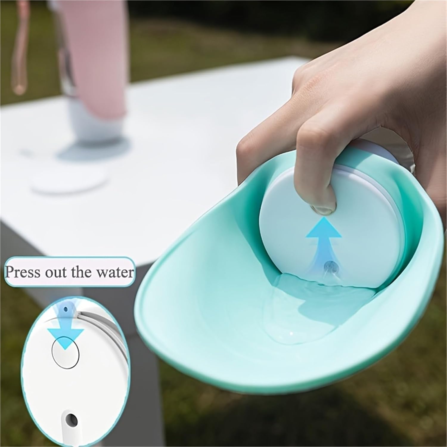• One-handed operation: Simple and water-saving: unfold the portable dog bowl/sink, press the button to dispense water, release it to stop. Just press the button to start dispensing water.