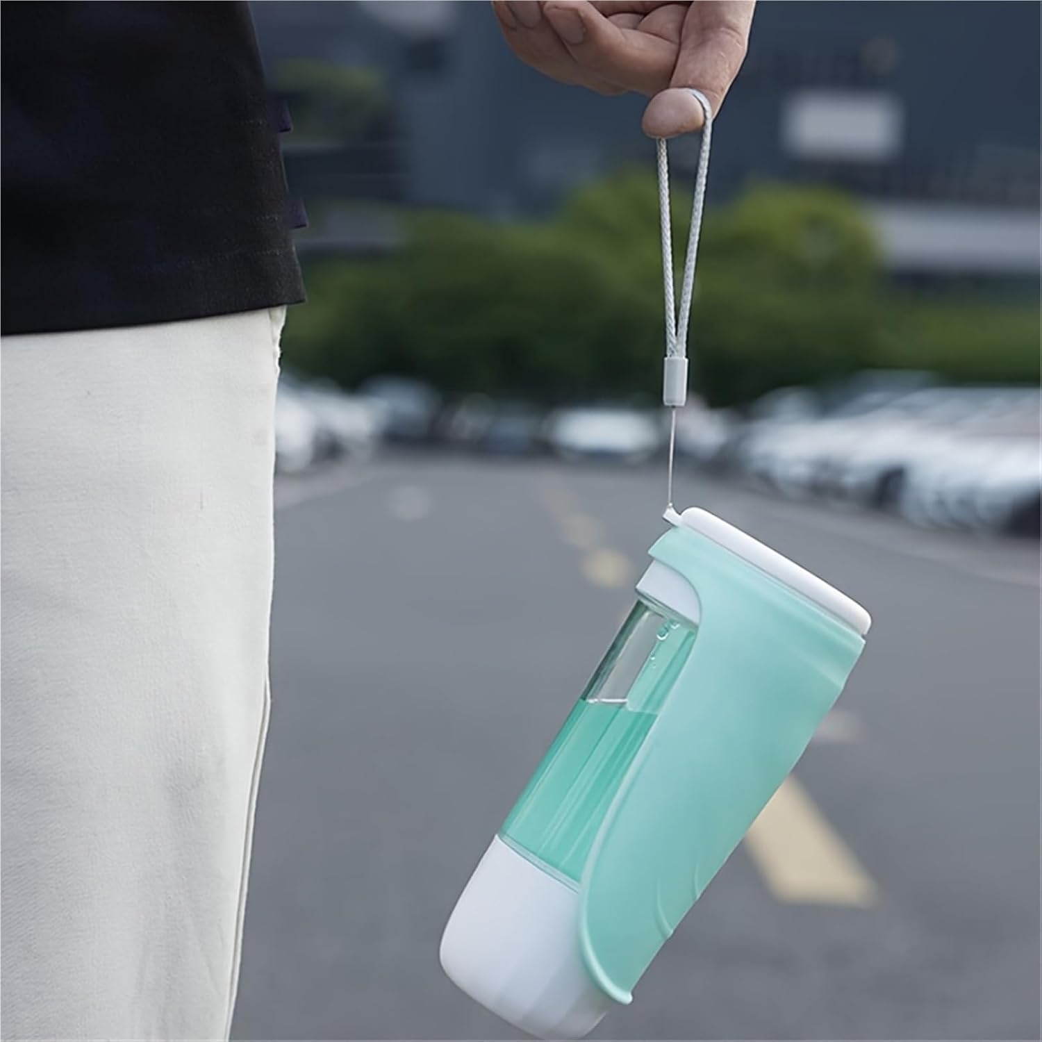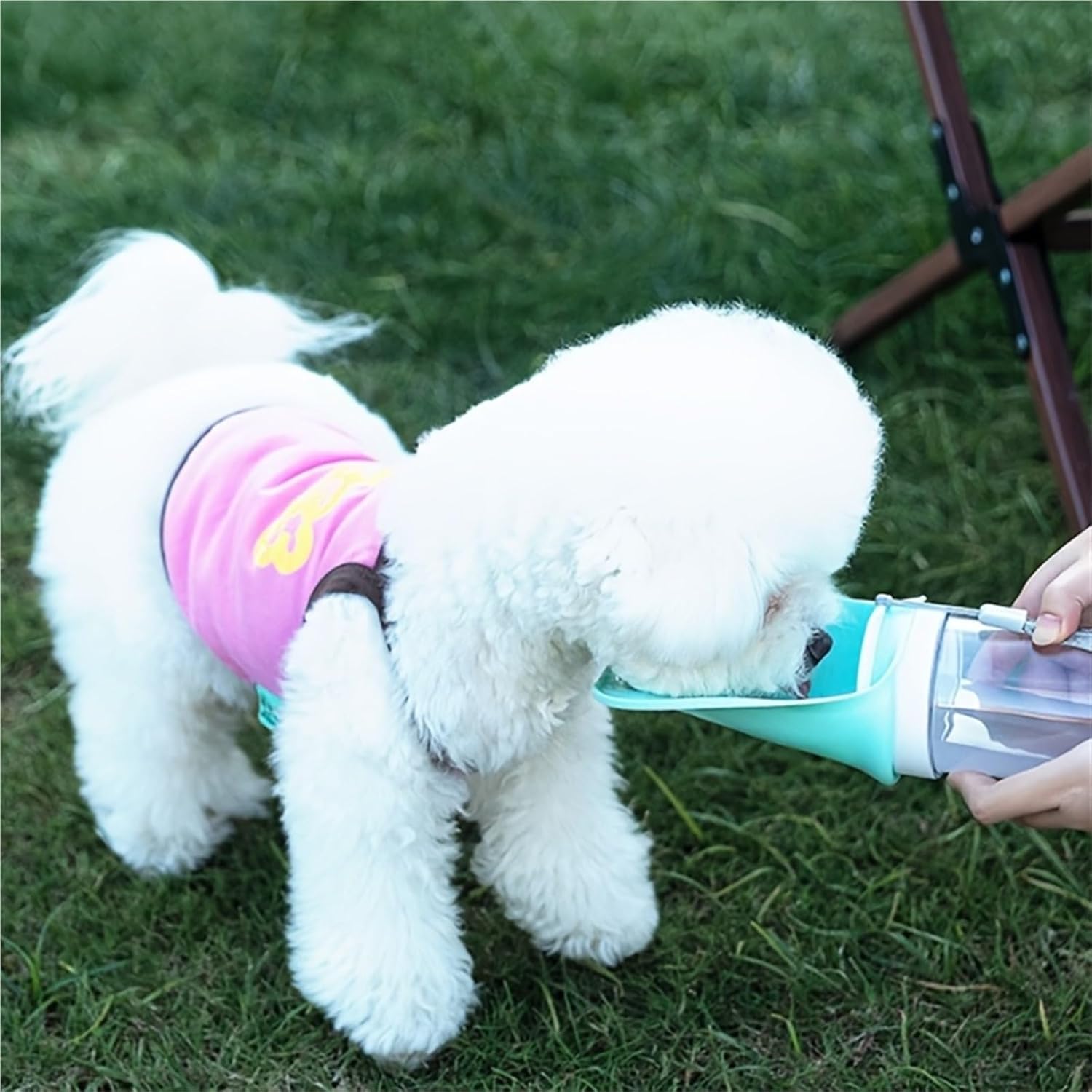 • Two-in-one design: This dog water bottle perfectly combines a water dispenser and food container. The food container and drinking cup are perfectly sized, easily fit into the spout, and fold up. The two-in-one design allows your dog to have fresh water and food on the go, making it convenient for travel, hiking, road trips, and playtime at the park.