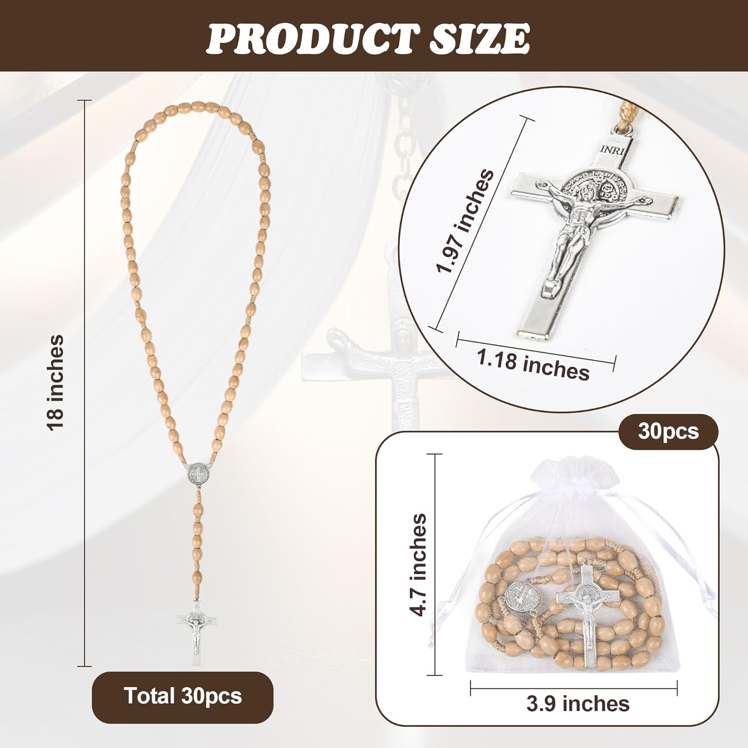 Features: Nice Combination for Convenience Experience the blend of lightweight and portability embodied in this prayer rosary. Designed both for reverence and convenience, the holy communion gifts are portable and lightweight, convenient to carry and store, can be put in your bag or pocket, not taking up much space. This thoughtful item makes it an ideal choice for large scale church events or religious gatherings;These wooden rosaries bulk for women men, and you create a striking atmosphere of dedication and harmony that enriches the visual appeal of your decoration. No matter what happens in life, keep a firm focus on the sacred scriptures. Specifications: Material: wood\metal Size:as shown in the picture Package includes: 30 x Pocket rosary 30 x white organza bags Notes: Manual measurement, please allow slight errors on size. The color may exist a slight difference due to different screen displays.