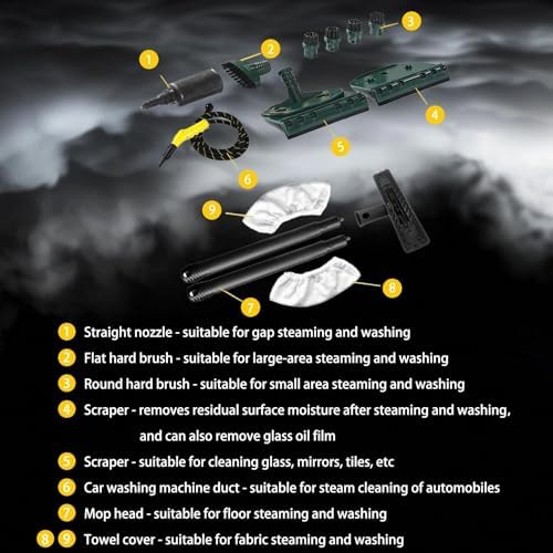 Are you tired of battling stubborn grease in the kitchen? Our powerful steam cleaner is here to revolutionize your cleaning routine! With high-temperature, high-pressure direct spray technology, it effortlessly dissolves grease in mere seconds, making kitchen clean-up quick and efficient. Say goodbye to sticky and damp floors! Our quick-drying steam feature ensures surfaces are left spotless and ready to walk on immediately, eliminating unsightly footprints. **Product Features:** 1. Smart digital display for precise timing and control. 2. Achieves 110°C steam plus ozone in just 15 seconds for effective cleaning. 3. Adjustable steam settings allow you to choose from gentle to powerful, catering to various surfaces. 4. Large 3.5L water tank minimizes the need for frequent refills, letting you clean more and worry less. 5. Comes with 6 professional-grade tools designed for all your cleaning needs. 6. Portable rollers make maneuvering around your home a breeze. **Product Specifications:** - **Product Name:** Steam Cleaner - **Power:** 3000W - **Steam Pressure:** 4.0-5.0 Bar - **Steam Flow Rate:** Approximately 120 ml/min - **Fuse Operating Temperature:** 240°C - **Steam Pipe Length:** 2.5M - **Net Weight:** 9.5 kg - **Gross Weight:** 11.5 kg - **Voltage:** 110V/220V - **Steam Temperature:** 110°C - **Temperature Controller Operating Temperature:** 180°C - **Water Tank Capacity:** 3.5L - **Power Cord Length:** 3.5M **Package Contents:** 1 x Steam Cleaner 1 x Straight Nozzle 1 x Flat Hard Brush 4 x Round Hard Brushes 2 x Scrapers 1 x Car Wash Machine Hose 1 x Mop Head 2 x Towel Covers 1 x English Instruction Manual For optimal performance, use only clean, purified water. Avoid adding deodorizers, aromatherapy products, or other liquids to prevent clogging. Transform your cleaning experience with our steam cleaner and enjoy a cleaner, fresher home!