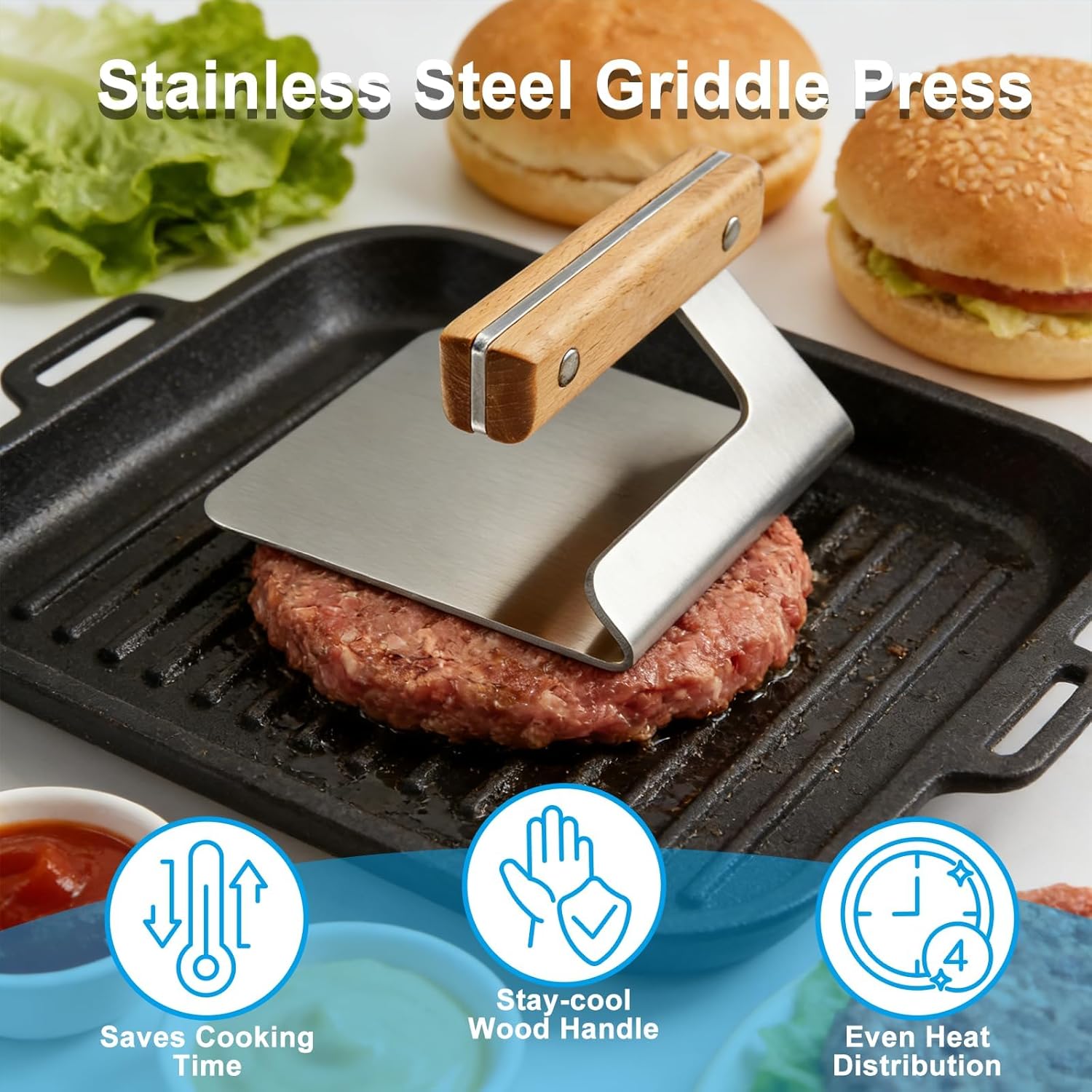 Stainless Steel Griddle Press for Flat Top Grilling, Grill & Hamburger Press Griddle Accessories