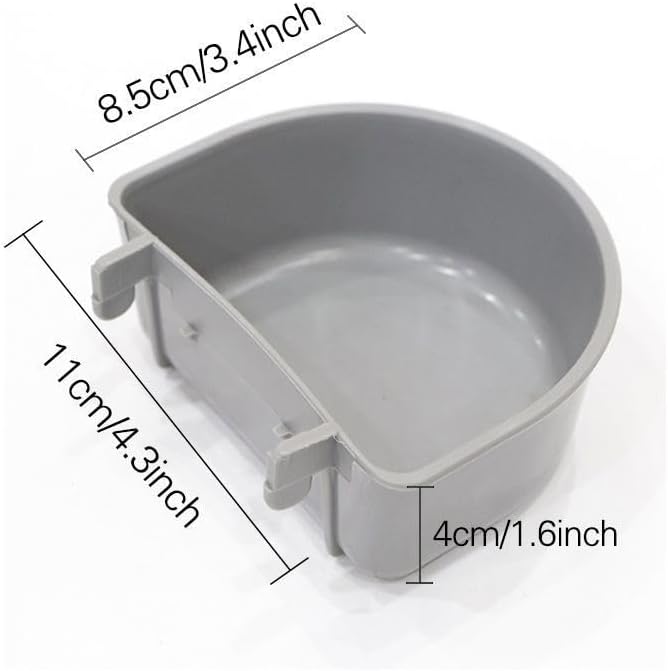 Keep your pet hydrated and well-fed during travel with this convenient hanging bowl designed specifically for pet carriers and cages. This durable gray plastic bowl measures 3.4 inches wide, 4.3 inches long, and 1.6 inches deep, providing ample space for food or water. The innovative hanging design features secure mounting clips that attach firmly to cage bars, preventing spills and keeping the bowl elevated and stable. Perfect for dogs and cats, this versatile bowl can be easily installed or removed for cleaning. The semi-circular shape maximizes corner space efficiency in carriers while ensuring your pet can comfortably access their food and water. Ideal for both short trips and longer journeys, this practical accessory helps maintain your pet's regular feeding schedule while on the move. The bowl's sturdy construction ensures long-lasting use, while its smooth interior surface makes cleaning quick and simple.
