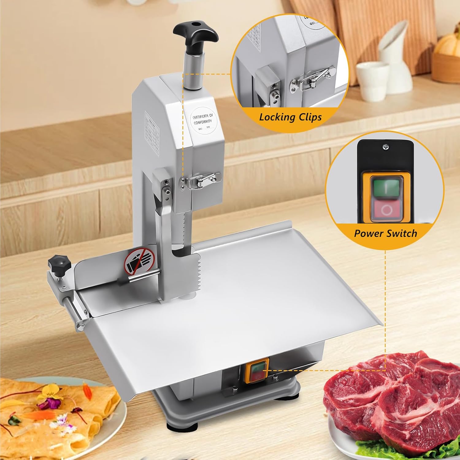 650W Commercial Electric Meat Bone Saw,w/Adjustable Slice Thickness Meat Bone Cutting Machine Cutter Slicer for cutting ribs trotters in homes markets factories