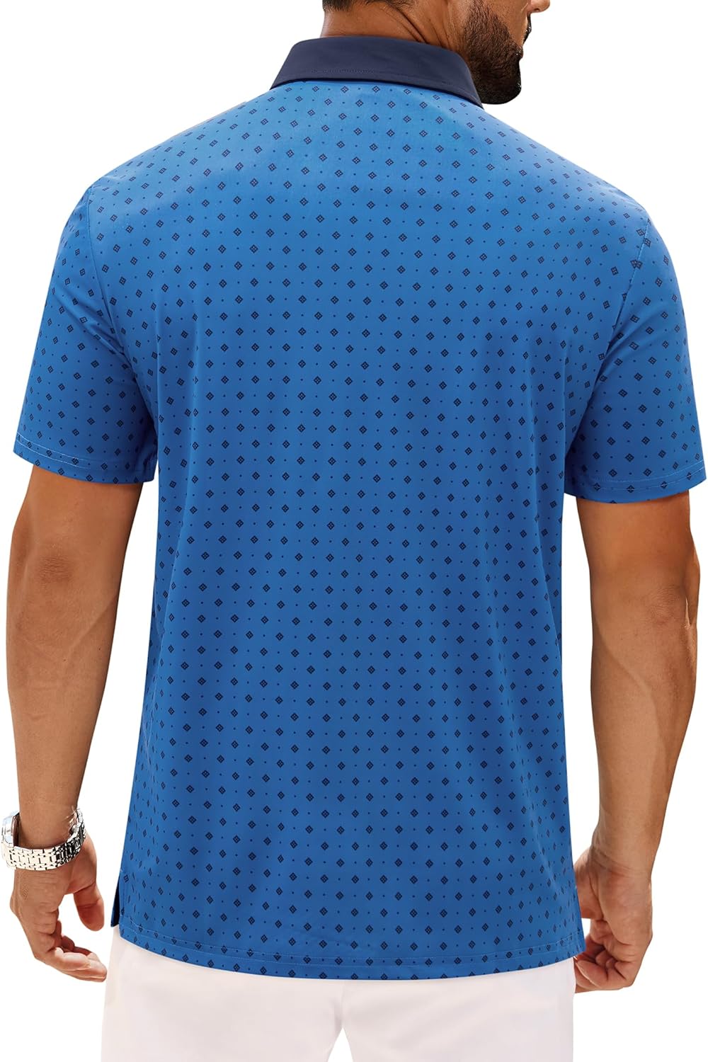 ALIMENS & GENTLE - Premium Performance Wear Since 2009Experience exceptional comfort with our advanced men's golf polo shirt, expertly engineered from 80% Polyester/20% Spandex fabric. Featuring advanced moisture-wicking technology and quick-dry properties that keep you cool and dry during intense activities.Advanced Performance Features The four-way stretch fabric provides complete freedom of movement for golf swings and athletic workouts. UPF 50+ sun protection shields you from harmful rays during outdoor activities. Lightweight and breathable construction ensures all-day comfort in any climate.Stylish Design Details Distinctive contrast collar creates visual impact while coordinated split-hem tape enhances mobility. Unique graphic prints and modern lapel collar offer a sharp, athletic silhouette perfect for both sports and casual occasions.Versatile Wearing Scenes Ideal for golf, tennis, running, hiking, and outdoor workouts. Transitions seamlessly to business casual settings, vacation trips, beach activities and daily wear. Makes an excellent gift choice for fathers, friends and family members.Easy Care & Durability Machine washable with excellent wrinkle resistance and color retention. Maintains shape and stretch properties after repeated washing, requiring minimal maintenance for long-lasting performance.Backed by over a decade of expertise in men's performance shirts, Alimens & Gentle combines superior technology with perfect US sizing for worldwide customers seeking quality and comfort.