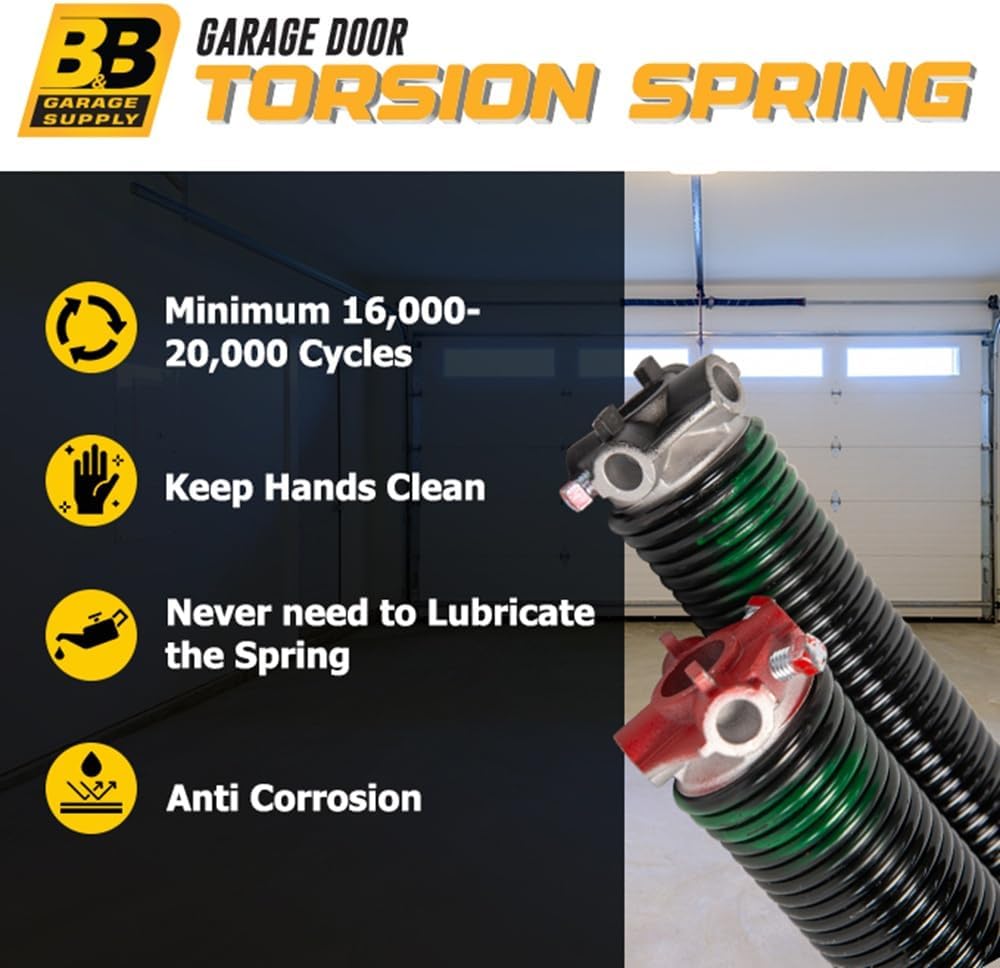 Keep your garage door running smoothly with the B&B Garage Supply Garage Door Torsion Springs Replacement Kit. Engineered for residential garage doors, these heavy-duty, high-cycle springs are built to last a minimum of 16,000 to 20,000 cycles, giving you years of reliable performance. The springs feature an advanced electrophoretic coating that makes them corrosion-proof and abrasion-proof, so you never need to lubricate them — and your hands stay clean during installation. The steel construction ensures exceptional durability and strength to handle the daily demands of a busy household. This kit includes winding bars and a steel bearing, providing everything you need for a straightforward replacement. Available in multiple sizes to fit a wide range of garage door configurations, making it easy to find the perfect match for your setup. Whether you're a seasoned DIYer or tackling your first garage door repair, this comprehensive kit from B&B Garage Supply delivers professional-grade quality at an accessible price point.