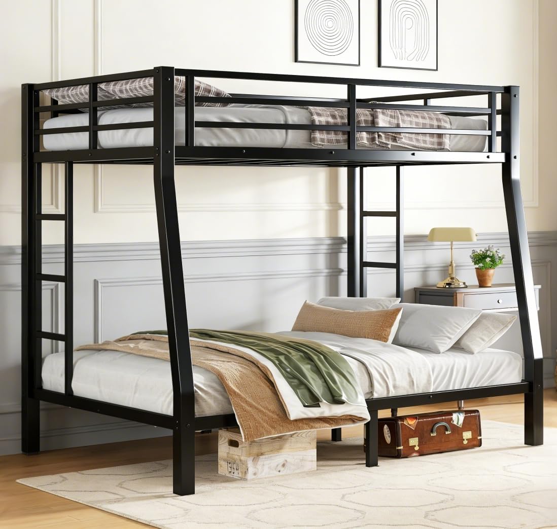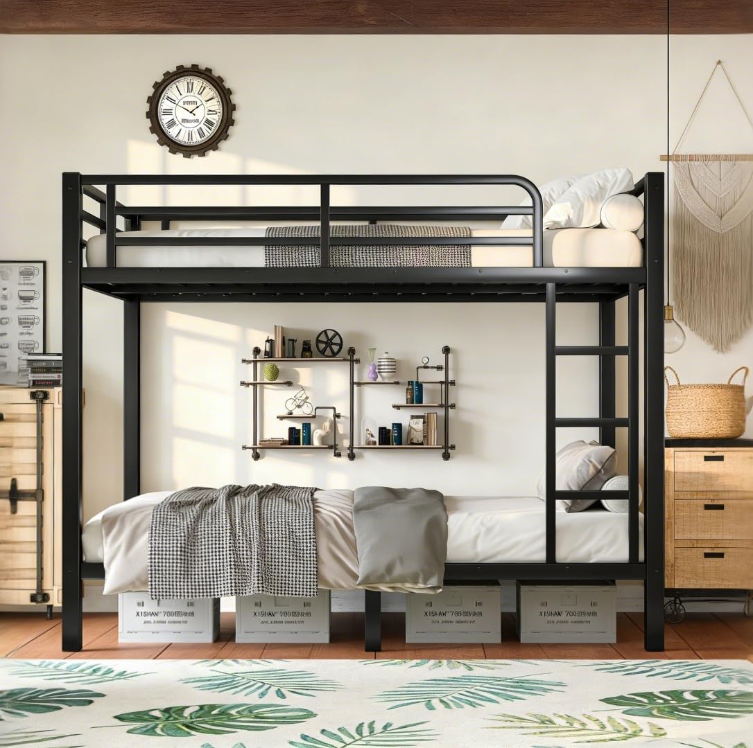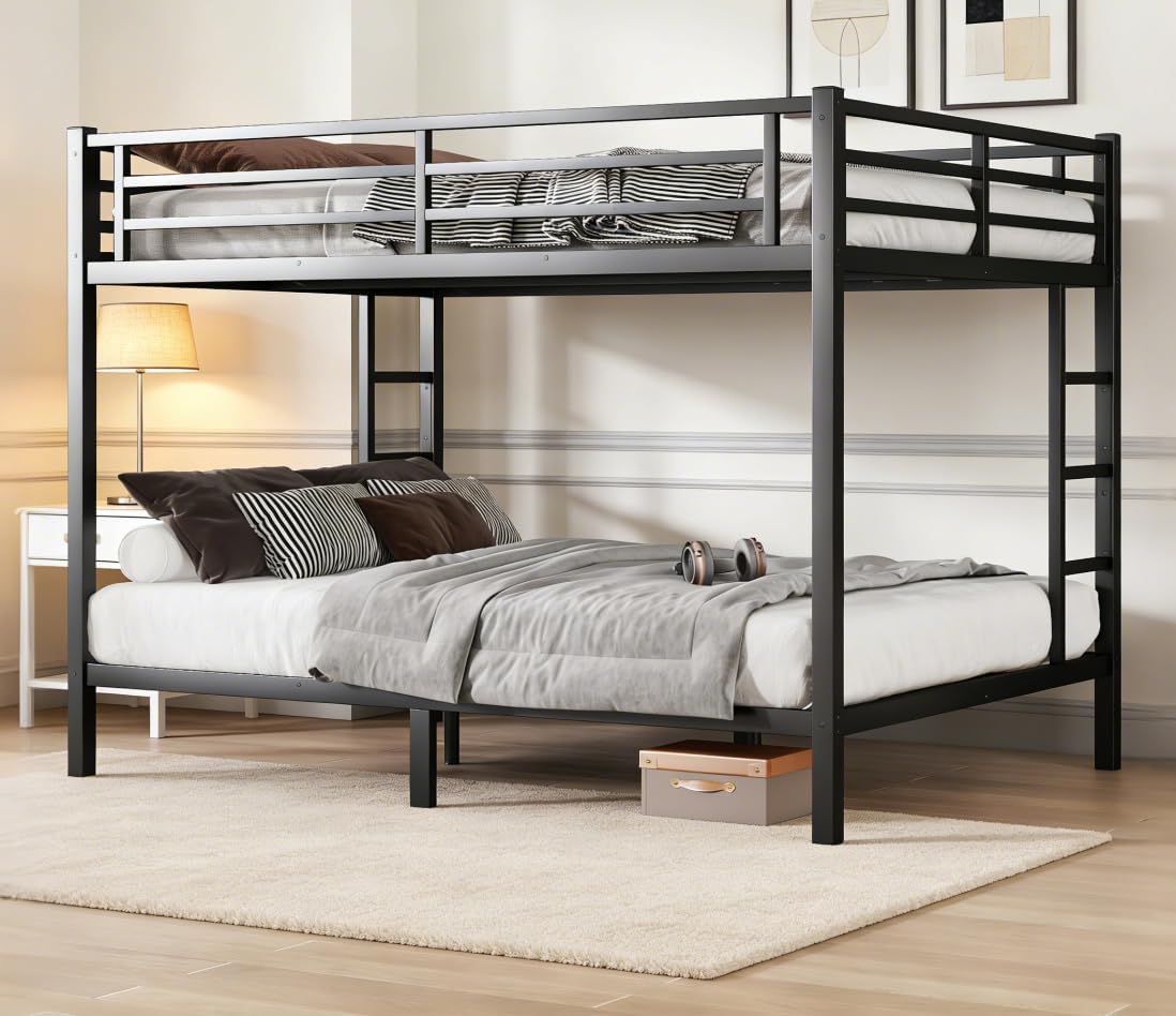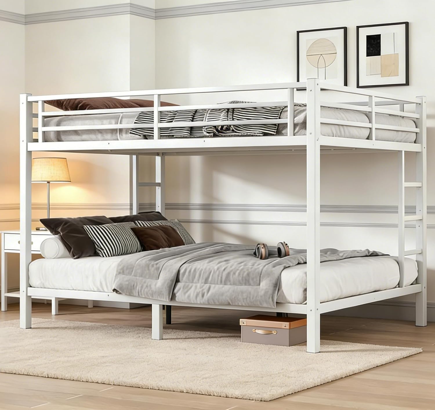 Superior Stability & All-in-One Design. This Full XL over Full XL Bunk Bed for Teens and Adults is expertly engineered with a sturdy metal bunk bed frame constructed from robust, thicker steel to ensure unwavering stability and long-term durability. The solid build effectively eliminates wobbling, allowing users to sleep soundly in a quiet, secure environment thanks to its integrated noise-reduced features. Perfect for any bedroom or dorm, its space-saving vertical design maximizes floor area and offers practical under-bed storage. The frame requires no box spring needed, and is complemented by a thoughtful safety design and easy assembly process, delivering exceptional value and reliable comfort for years to come.