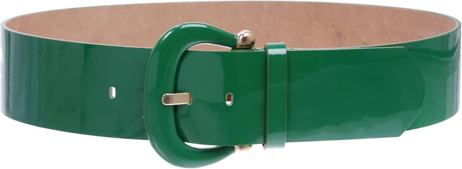 1. The Women's Patent Fashion High Waist Belt is a versatile and stylish accessory that adds flair and sophistication to any outfit. Crafted with high-quality materials and attention to detail, this belt is a testament to superior craftsmanship and timeless design. Its high waist design accentuates the waistline, creating a flattering silhouette that enhances any ensemble. 2. Crafted from a combination of plain genuine leather lining and man-made patent leather, this belt offers both durability and elegance. The leather lining provides a soft and comfortable feel, while the patent leather adds a touch of sophistication. The wide width of 2 1/4" or 48mm makes it a bold and eye-catching accessory, adding visual interest and dimension to your look. 3. The self-covered horseshoe buckle, adorned with intricate shiny metal gold detailing, adds a touch of Western charm and personality to the belt. Available in Red, Black, White, Kelly Green, and Fuchsia, you can choose the color that best complements your personal style. The belt is sized to the center hole, and it is recommended to order about 2 inches larger than your waist measurement for the best fit. With five holes spaced 1" apart, you can easily adjust the belt to achieve the ideal fit and comfort level. 4. Whether you're dressing up for a special occasion or adding a touch of sophistication to your everyday look, the Women's Patent Fashion High Waist Belt is the perfect accessory. Pair it with a dress for a formal event, or wear it over a blouse or coat for a chic and polished look. Its timeless design and classic appeal make it a wardrobe essential that you'll reach for time and time again. Elevate your style and add a touch of elegance to your wardrobe with the Women's Patent Fashion High Waist Belt.