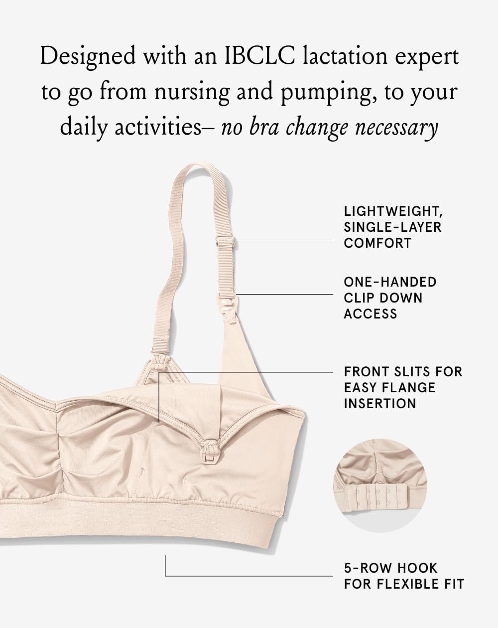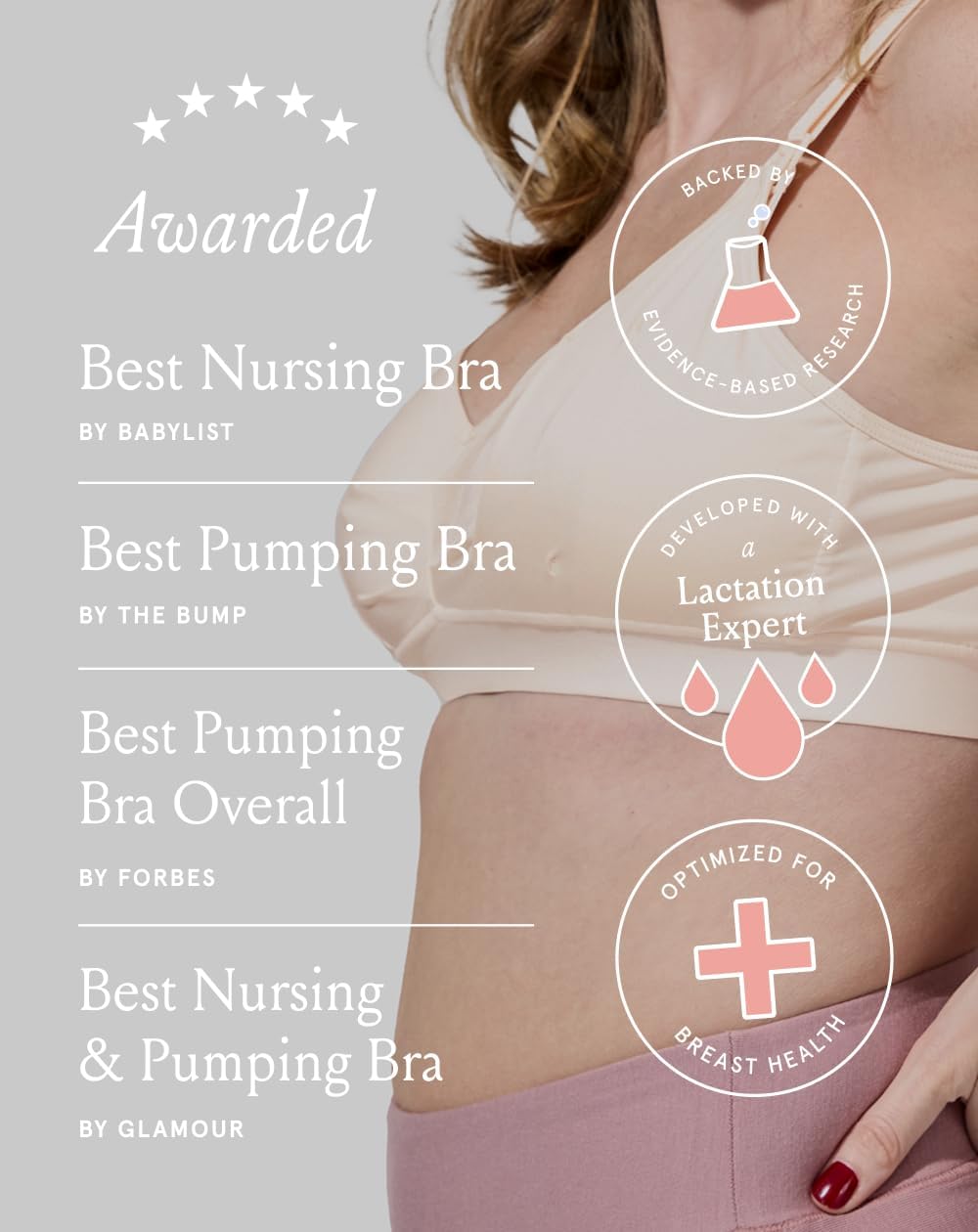The Do Anything Bra by Bodily is an award-winning pumping and nursing bra providing maximum comfort and convenience to enable hands-free pumping and easy nursing, without ever changing your bra. Meticulously designed with a lactation consultant to optimize breast health, this bra makes feeds easier with just a single layer of fabric to insert your flanges, easy one-handed nursing clips for nursing access, and front-adjustable straps for additional support. This versatile bra is made of super soft and stretchy OEKO-TEX certified fabric and designed to flex with you through all stages, from pregnancy through breastfeeding and beyond. With its silky, luxurious fabric and elevated design, the Do Anything Bra looks great underclothes, enabling you to wear this bra with confidence all day as you pump and nurse. The Do Anything Bra is one of the most beloved hands-free pumping and nursing bras in the industry and has received numerous accolades from reputable outlets, including Best Nursing Bra Overall by Forbes, Best Pumping Bra by The Bump, Best Hands-Free Pumping and Nursing Bra by Babylist, Best Overall Pumping Bra by Harper’s Bazaar, and Best Pumping and Nursing Bra by Parents. At Bodily, we believe essential products can and should make you feel good. You should feel good putting them on your body, you should feel good wearing them, and you should feel good buying them. Through evidence-based research and design-led products, we create solutions that empower you to live confidently in your body in pregnancy, postpartum, breastfeeding, and beyond. Embrace the freedom and convenience the Do Anything Bra by Bodily brings to your pumping and nursing routine.