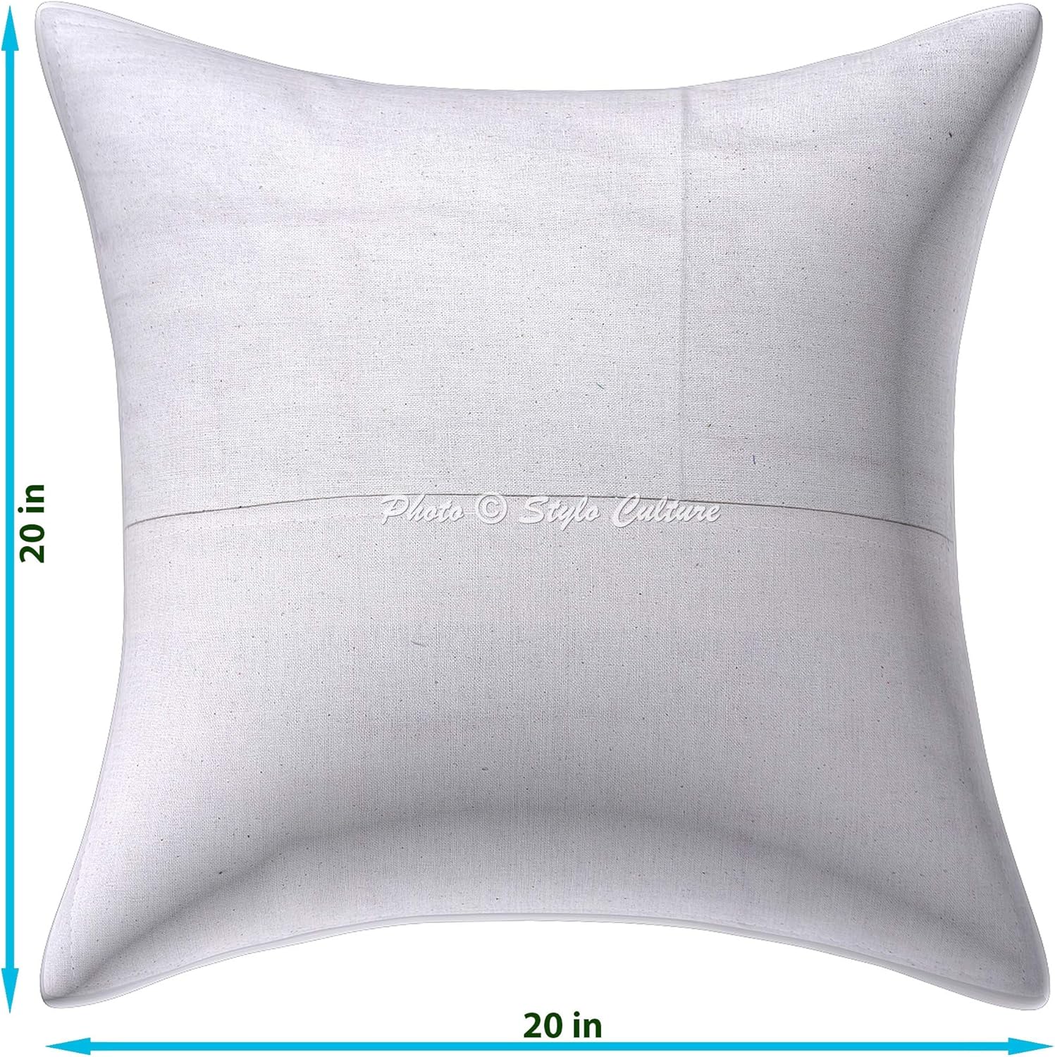 Stylo culture presents trendy vintage fabric patchwork throw pillow cushion covers. Stylo Culture traditional vintage patchwork cushion covers using vintage fabric patches in a range of various beautiful colours and patterns are designed to fit into any home decor interior settings and almost all colour schemes. They give the Bohemian Boho look to any interior decor. Let your sofas & couches get acquainted to the sumptuous luxurious yet boho look of these pretty throw pillow cushion covers. Every corner and dimension of these cushion covers don't fail to surprise you with their appeal. In these cushion covers, embroidered fabric patches are patched and stitched together at random to create a collage like effect and decorated with all kinds of colored threads, patchwork, raised colored thread work and embroidery in intricate designs. It is a beautiful "Khambadiya" pillow cushion cover made by artisans in Barmer, India. Witness the exquisite embroidery and thread work on a vibrant cotton backing, creating a stunning collage bursting with gorgeous patterns and colorful patches! SINCE THE CUSHION COVERS ARE MADE FROM VINTAGE FABRIC PATCHES, THERE WILL BE VARIATION IN THE PATCHES HOWEVER THE BASE COLOR WILL REMAIN SAME. These cushion covers should only be Dry Cleaned due to their manufacturing technique. DO NOT WASH THESE CUSHION COVERS The cushion covers are in size 20x20 inches (50x50 cm). These are white colored throw pillow covers and can be used in multiple ways - be it sofa cushions, bed throw pillows, scatter cushion covers, decorative pillows, living room decoration, bedroom decoration etc. The sales package comprises of 2 throw pillow cushion covers in abstract & floral patterns. PLEASE NOTE THE SALES PACKAGE INCLUDES ONLY CUSHION PILLOW COVERS AND DOES NOT INCLUDE FILLER INSERTS.