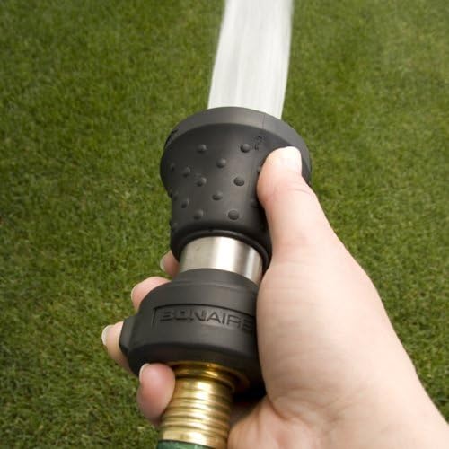 This multifunctional spray nozzle from Bon-Aire will be the only nozzle you will ever need, giving you the perfect stream of water for any job and in 5 different patterns. Engineered from stainless steel and high-grade fiberglass — making this tool virtually indestructible, leak proof and it will never rust. The Patented 2-way shut-off feature in both directions and Bon-Aire ergonomics rubberized comfort grip, makes watering a breeze. The Bon-Aire ORIGINAL ULTIMATE Hose Nozzle fits any standard garden hose (5/8 in or larger recommended for optimal performance).