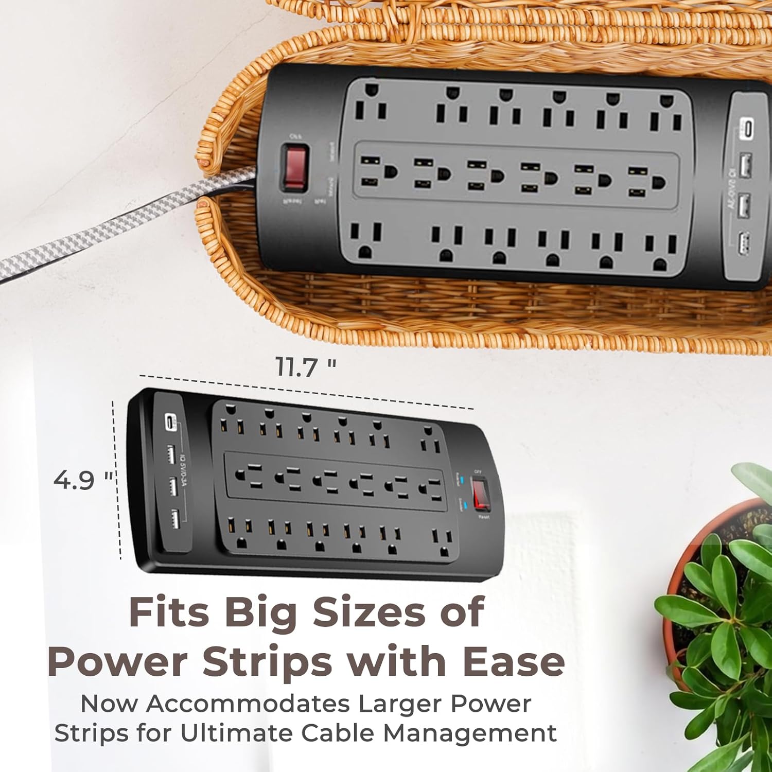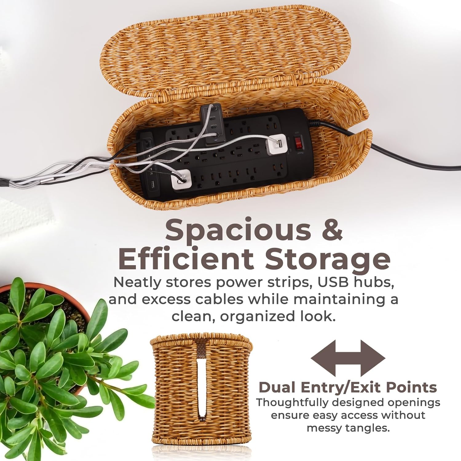 Introducing the Cantalop Cords organizer box for desks, an innovative solution to streamline your cable organization woes. Crafted by Cantalop, this power strip box is a blend of functionality and style, designed to elevate your workspace or living area. Made from premium polypropylene rattan material, this wire storage box boasts durability, resilience, and an eco-friendly touch. Its handcrafted polypropylene rattan-like plastic lid not only conceals unsightly wires but also adds a rustic elegance to your surroundings, making it an elegant addition to any décor.
