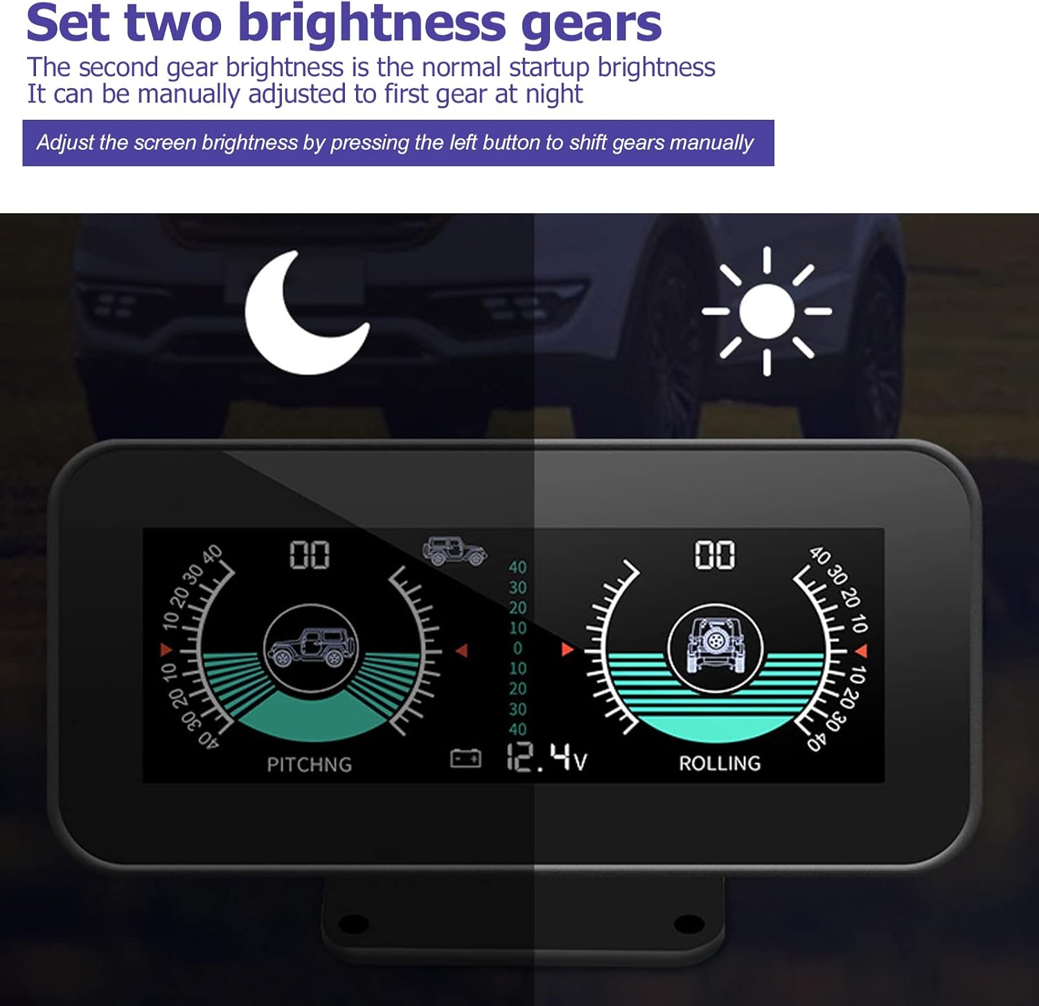Item Type: Car InclinometerMaterial: ABS+PChigh temperature resistantFitment: UniversalFunction: Control mode intelligenceHigh resolutionPower Supply Mode: Cigarette lighter /ACCPower Supply: DC11.5V-30VOperating Temperature: -40°C - +80°CVoltage Measurement Range: 11.5-30VPackage List:1 x Car Inclinometer1 xCigarette Lighter Connection Cable1 x ACCPower Line1 x User Manual1 x Bracket