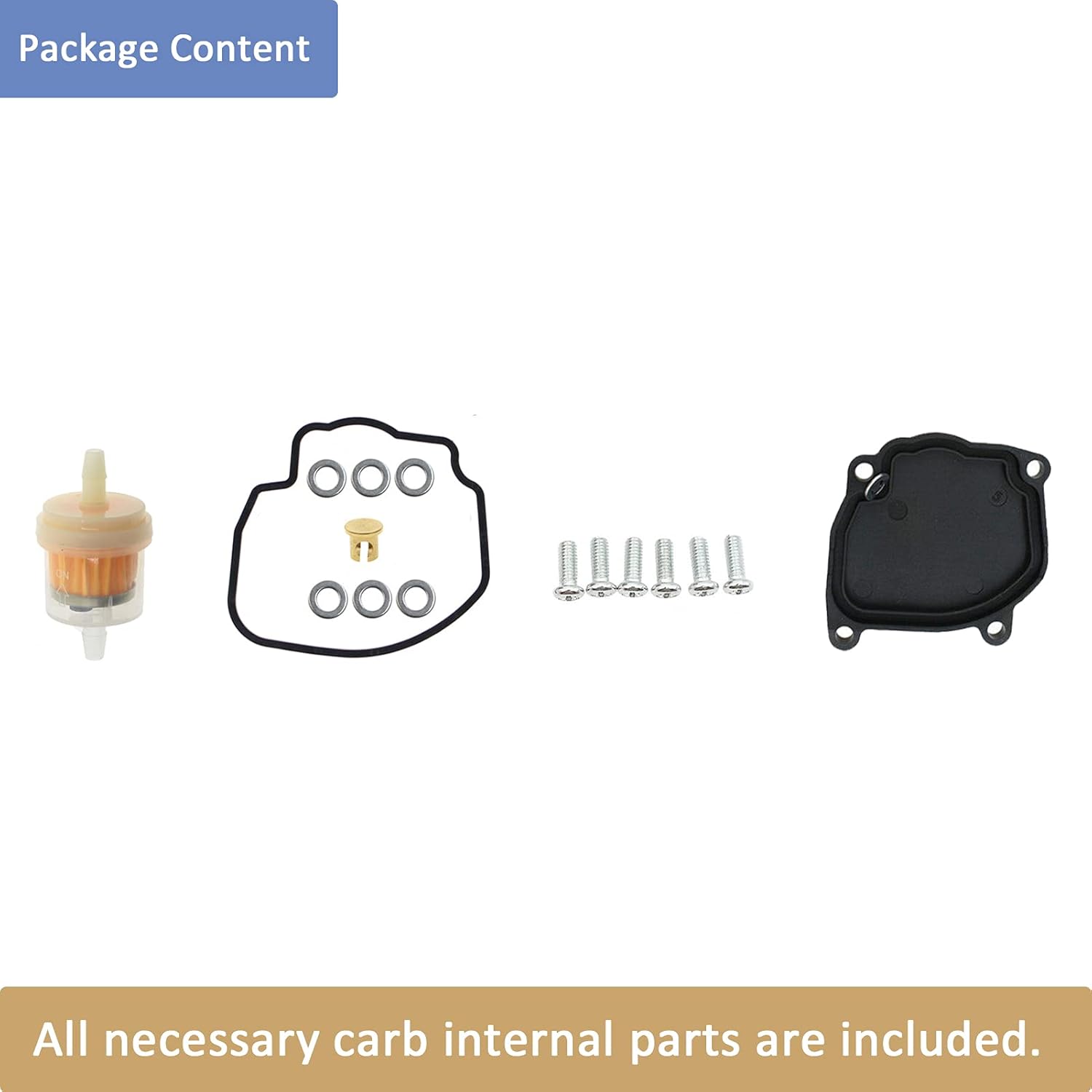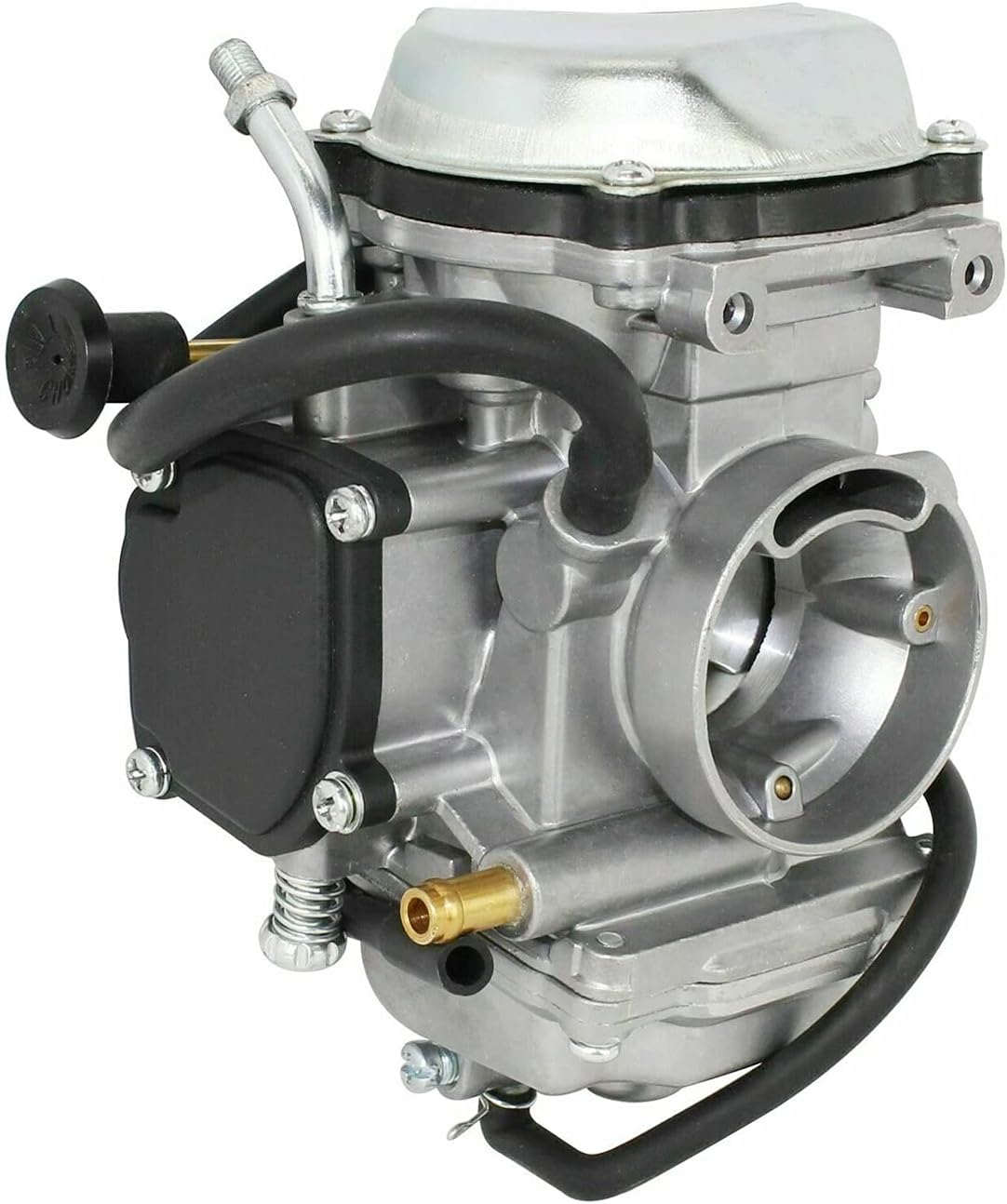 ------- For Yamaha Wolverine & Big Bear 350 YFM350 Carb -------- FITMENT New carburetor fit for: -- For Yamaha Wolverine 350 YFM350 1996, 1997, 1998, 1999 -- For Yamaha Wolverine 350 YFM350 2000, 2001, 2002 -- For Yamaha Wolverine 350 YFM350 2003, 2004, 2005 -- For Yamaha Big Bear 350 YFM350 4x4 1999 Carb replacement of part numbers: 4KB-14901-10-00 4KB-14901-22-00FEATURE -- 100% brand new -- Direct replacement; Containing all necessary parts. -- No/little adjustment needed and easy to install. -- Making your old engine run like new: ① Start right up ② Idle properly ③ Accelerate properlyDIMENSION Outlet side Inner Diameter: 34mm (1.34”) Outlet side Outer Diameter: 39mm (1.53”) Inlet side Inner Diameter: 46mm (1.81”) Inlet side Outer Diameter: 50mm (1.97”)PACKAGE 1x Carburetor 1x Gasket 1x Fuel Filter 1x Throttle Cable Cover 6x Base Cover Screws (As shown in pic. 1) NOTICE: Please check the appearance, model, year, sizes and part number to confirm if it will fit.