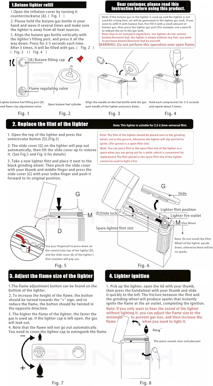 • [Note] Please note that lighters do not contain fuel and all lighters are empty. Be sure to refuel the lighter before actual use.