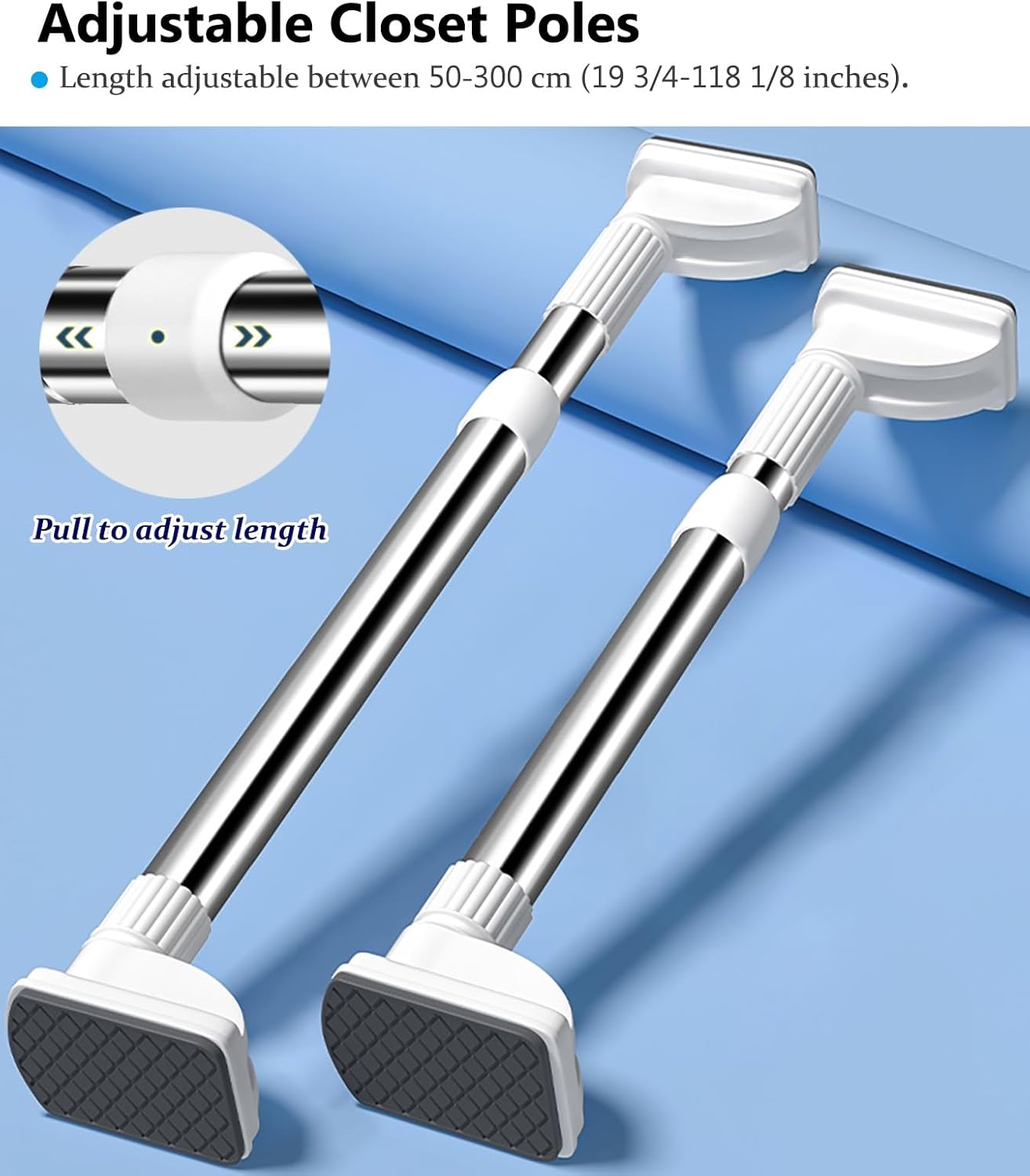 Do you feel that there is always not enough total closet space, clothes are easily wrinkled when stacked together, and you may hate your closet. Well, you need this rods for closet for clothes, which can help you find out more closet space and help you restore the order inside your closet. Specifications:- Product Name: Closet Rod- Material: Stainless steel- Easy to Install: YesFeatures:- Made of stainless steel to prevent rusting.- Strong load bearing capacity, no need to worry about bending.- Adjustable length to fit a variety of closets.- No need to drill holes and will not damage walls.- Increase closet space utilization.- For closets/ bathrooms/ laundry rooms/ balconies/ door curtains/ closets/ windows/ bedrooms.Package Contents:- 1 x Closet RodNotes:- Please measure the length of the closet before purchasing and choose the right clothes hanging bar according to the measured dimensions.- Please allow a slight measurement error due to manual measurement, the actual size may vary from the delivered item.- Due to the color adjustment of each monitor, the color may be slightly different, the actual product and the photo may be slightly different. Premium Service:- If you have any questions about the product, please contact me at any time, we will give you a perfect answer.