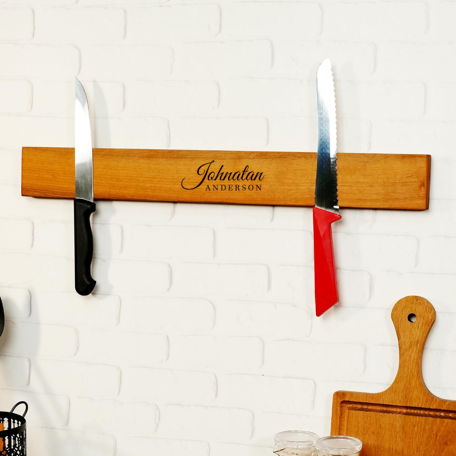 🏡 Where Home Begins, Memories FollowEvery home has a beginning — and this custom engraved walnut knife holder captures it beautifully. With your family name and the word “Home” etched in elegant script ✨, this piece celebrates the day you stopped calling it a house and started calling it yours. It’s a quiet symbol of belonging, one that greets you every time you enter the kitchen.Handcrafted from solid walnut wood, the strip features a smooth, minimalist silhouette with natural grain that adds warmth to any space. The precision laser engraving ensures your personalization — whether it’s a surname, move-in year, or a meaningful phrase — is crisp, permanent, and full of heart ❤️. It’s where aesthetic design meets emotional connection.Thanks to the powerful internal magnetic strip, your everyday kitchen tools stay safely within reach while your countertops stay clear. It’s a blend of functionality and visual charm, perfect for turning even the simplest wall into a place of personal significance.Installation is quick and clean with the included damage-free adhesive strips — no tools, no drilling, no stress 🛠️. Whether you’re celebrating a first home, surprising a newlywed couple, or upgrading your own kitchen with love and intention, this handmade piece becomes more than décor — it becomes part of your story.🗝️ Personalized to Welcome. Built to Belong. Made for Daily Living.