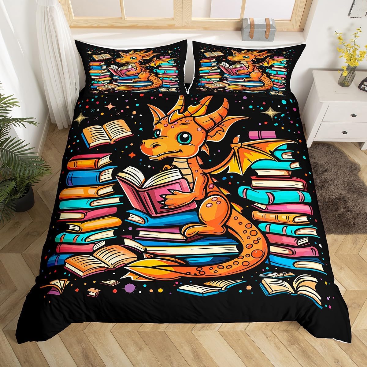 Package Include: Duvet Cover, Pillowcase High-end Duvet Cover Set Pattern Bedding Set, simply decorating your rooms any time you want, bringing you fresh feel for year round use!Long-lasting: Made from 100% polyester microfiber, the sheet set offers long-lasting strength, anatural resistance to shrinking and a noticeably soft hand feel. Size Information:: Twin size (2pcs duvet cover set): 1 Duvet Cover 68" x 90"(173 x 228cm), 1 pillowcase 20" x 30"(51x75cm).Without Comforter.Full size (3pcs duvet cover set): 1 Duvet Cover 80" x 90"(200 x 229cm), 2 pillowcase 20" x 30"(51 x 75cm).Without ComforterQueen size (3pcs duvet cover set): 1 Duvet Cover 90" x 90"(229 x 229cm), 2 pillowcase 20" x 30"(51 x 75cm).Without ComforterKing size (3pcs duvet cover set): 1 Duvet Cover 104" x 90"(264 x 229cm), 2 pillowcase 20" x 36"(51 x 92cm).Without ComforterPersonalize your bedroom:Beautiful design and colorful print, makes your bedroom unique and brings you a wonderful dream.Washing instructionsMachine wash separately in cold water,hang dry, do not bleach.Occasion:The cute soft duvet cover bedding sets designed for Children ,Adult, Men, Women, Teens. This duvet cover set is also suitable for full seasons, Spring, Summer, Autumn and Winter.( You can also buy it for your family and friends :)