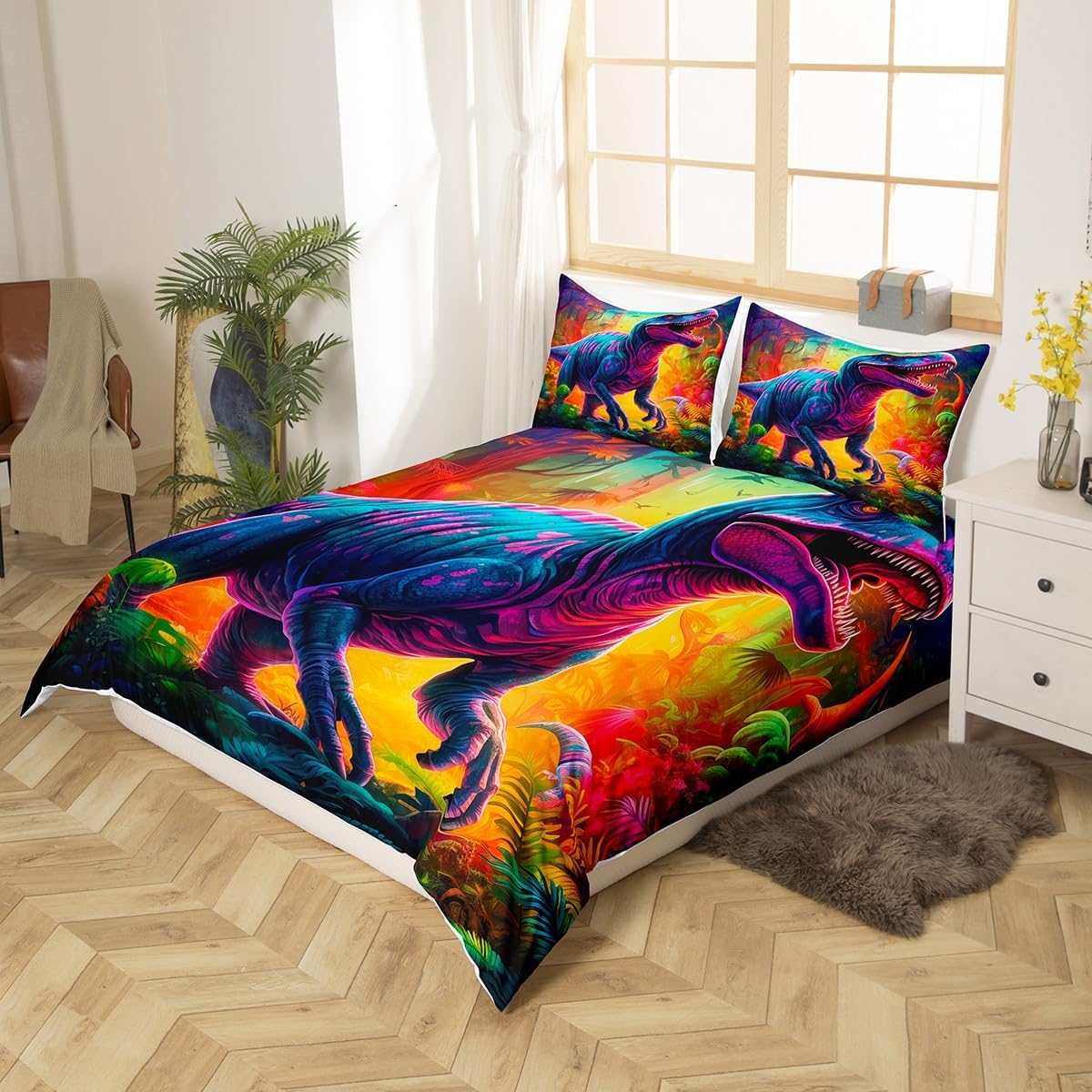 Erosebridal Toddler Dinosaur Bedding Set Twin Watercolor Dino Comforter Cover for Boys Girls, Tyrannosaurus Rex Bed Set Rainbow Jungle Duvet Cover, Wild Animal Quilt Cover Microfiber 2pcs