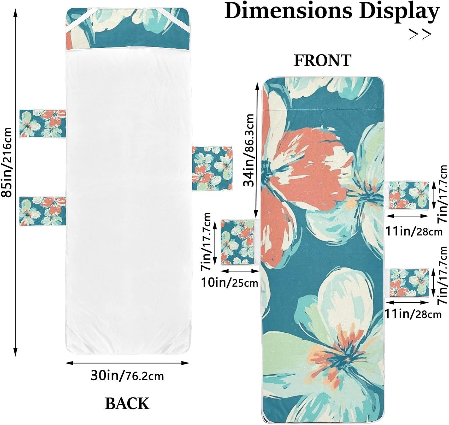 Specifications:Material: PolyesterSize: 30 x 85 inches/ 76.2 x 216 cmPackage includes: 1 x Beach Chair CoverWindproof Feature: This Patio Chaise Lounge Chair Cover with a deep 11'' top pocket that fits over most sun chairs, and it has four retractable fixing straps secured to chaise leg, helps it stay in place when you are trying to enjoy in the sun.Three Side Pockets: Features built-in storage pockets to keep your essentials organized and within easy reach while relaxing.Portable Design: You can fold up this Chair Cover into a convenient shoulder strap bag, easy to carry and the large top pocket to store clothing whilst sunbathing.Easy to Care: These beach chair covers with pockets can be machine washed gently. Dry at a low temperature and take out of the dryer quickly to avoid wrinkles. Avoid bleach or soak in the water for a long time.Notes:Manual measurement, please allow slight errors on size.The color may exist a slight difference due to different screen displays.