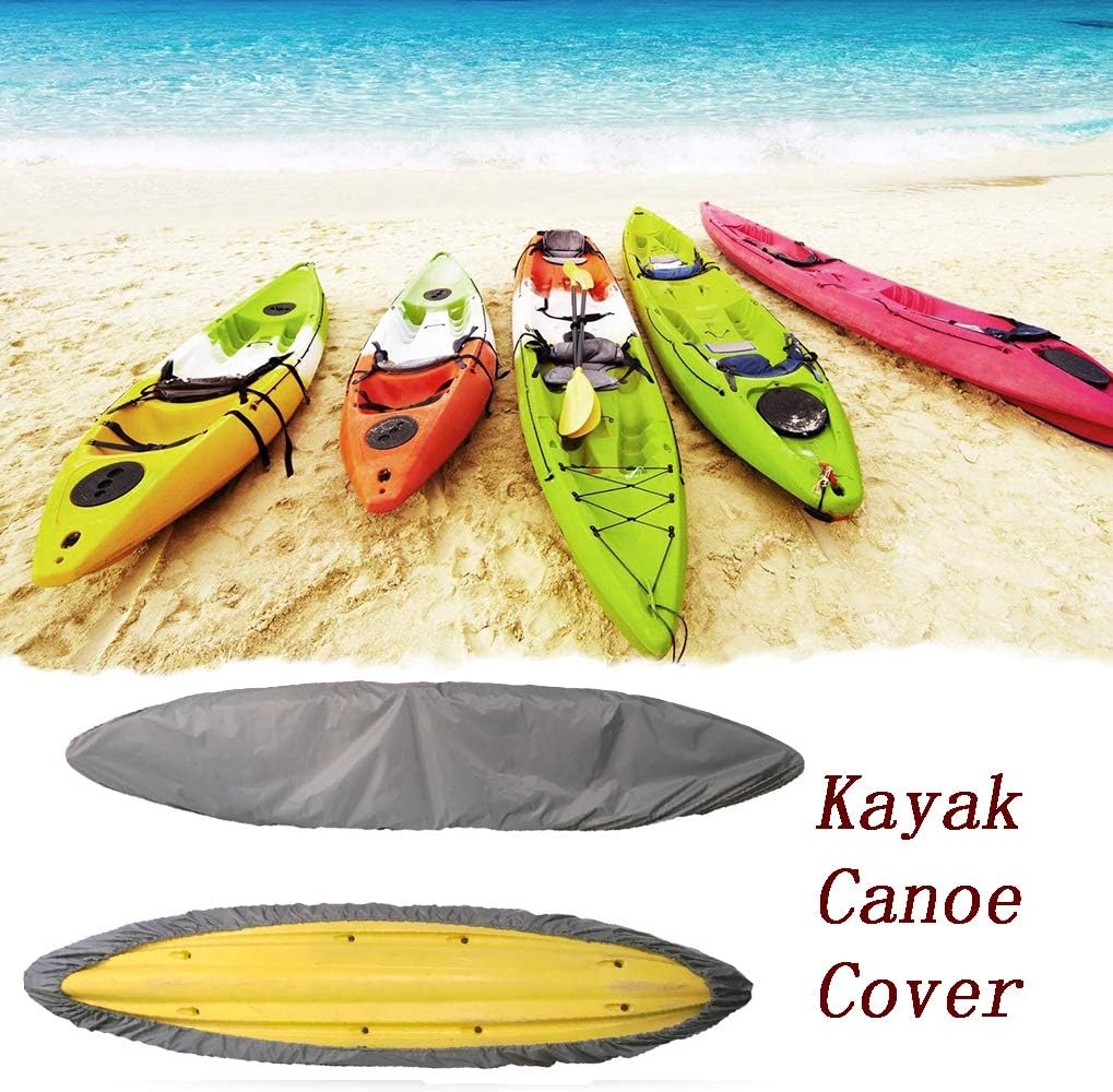 2.1-2.5m/6.8-8.2ft; 2.6-3m/18.5-9.8ft; 3.1-3.5m/10.1-11.4ft; 3.6-4m/11.8-13.1ft; 4.1-4.5m/13.4-14.7ft; 4.6-5m/15.9-16.4ft; 5.1-5.5m/16.7-18ft; 5.6-6m/18.3-19.6ft. Color: Green camouflage; Blue camouflage; Desert camouflage; Silver. Kayak cover protect your kayak, fining boat cover, canoe from rain, sun, snow and other damage. More long-lasting, UV resistant, teat resistant, waterproof. Package include: 1 x Kayak cover