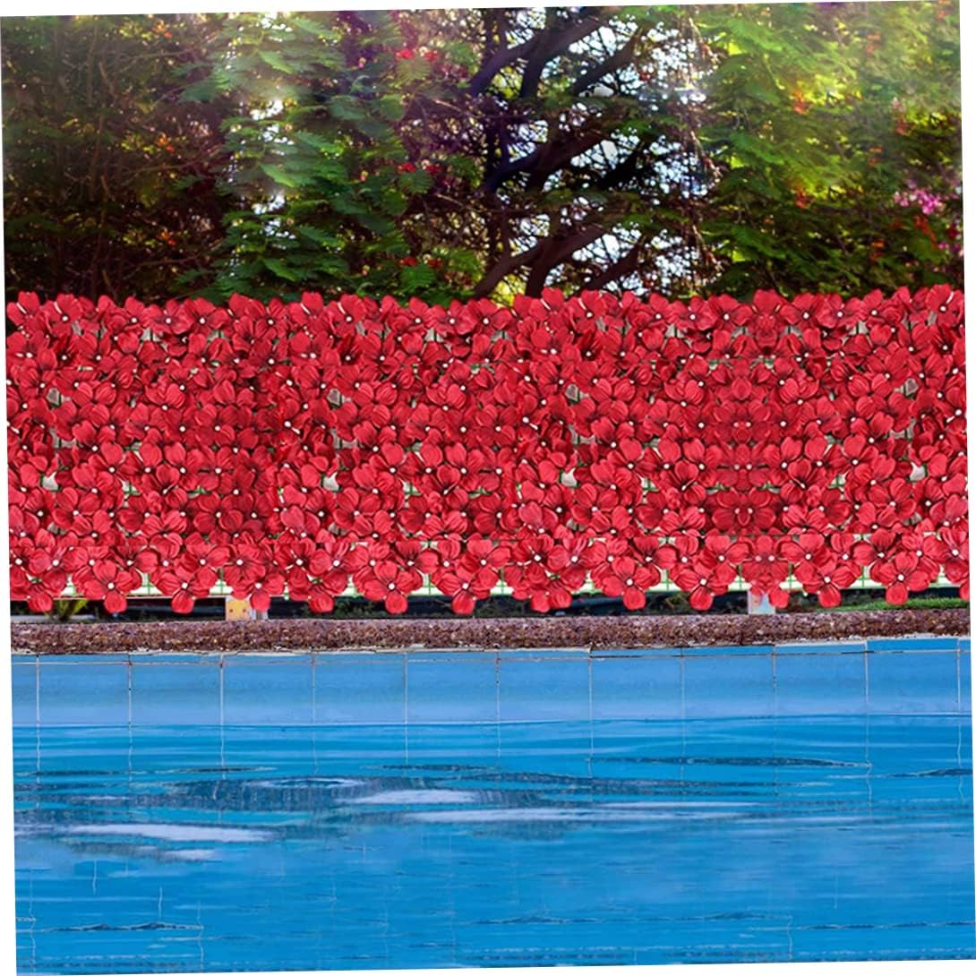 Garden Protective Screens, Artificial Flower Fence Trellis Fence Panels Garden Wall Fence Adornment for Wedding Yard Red 50x300CM Description Artificial fence can be used for balcony shielding, terrace decoration, wedding wall, bar wall decoration, commercial sign wall decoration, restaurant wall decoration, etc. The grid on the back of the fence can be seamlessly connected and trimmed, and is flexible and can be bent at will. Features Artificial flower fence -Color: Red. -Material: Plastic,silk cloth. -Size: 50x300 cm/19.69x118.11 inch. The realistic petals can also act as a windshield, reducing street noise, thereby providing an extra sense of relaxation Package Including 1 * Artificial flower fence