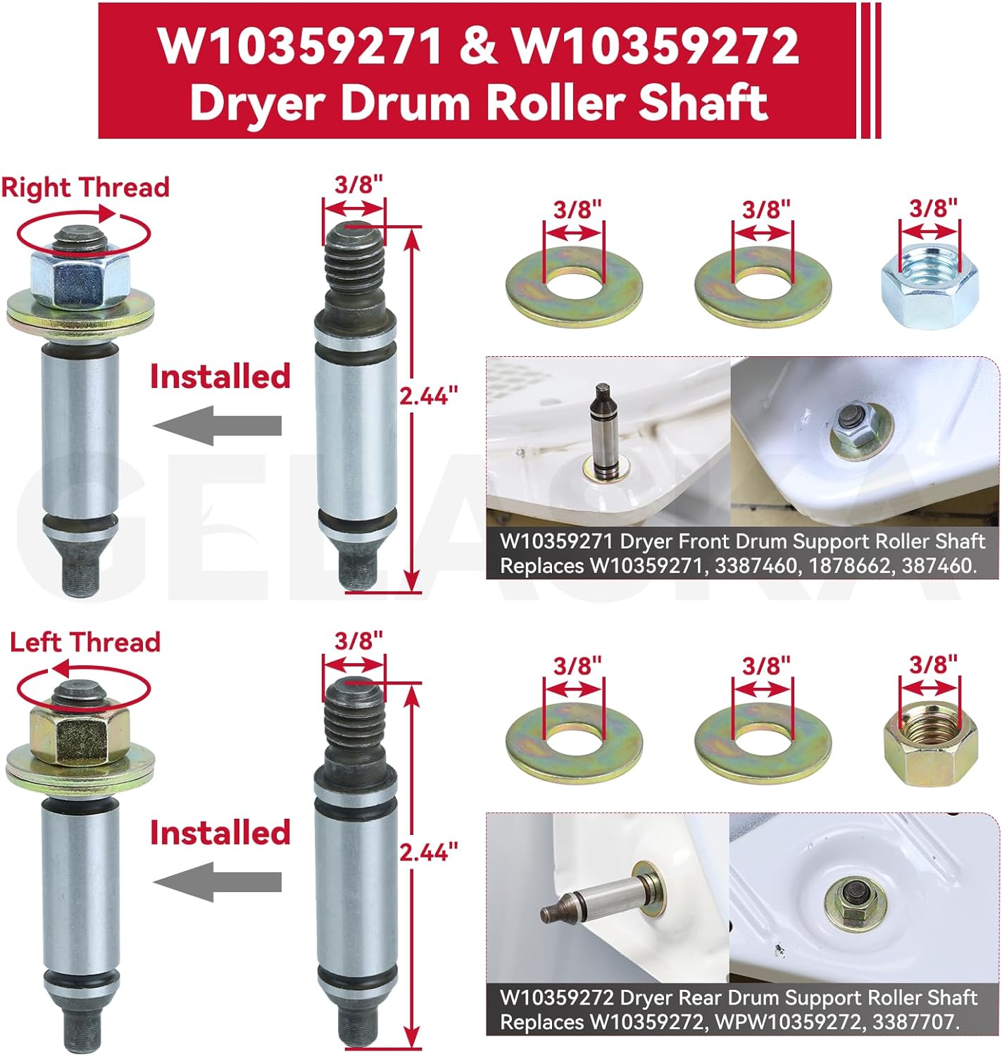 | Color | 4392067 Dryer Repair Kit +2xWPW10359271+2x W10359272 Support Shaft+1x279640 Dryer Idler Pulley+1x661570V Belt |