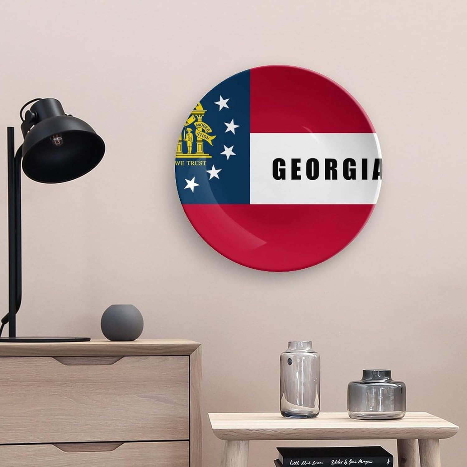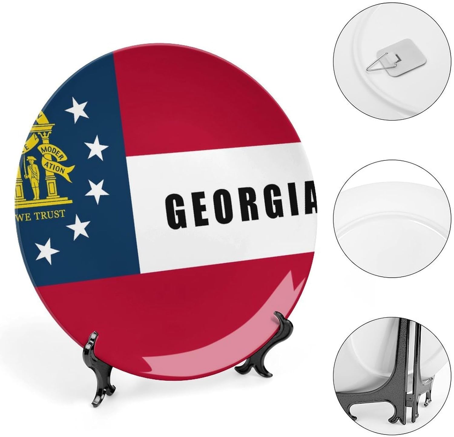 Georgia State Flag U.S.A. Decorative Plates for Display Ceramic Plate Tray with Stand Hanger Home Decor