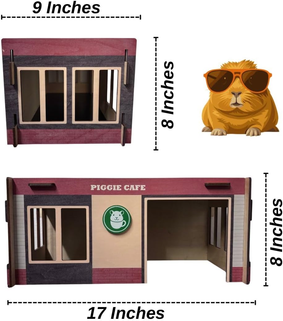 Give your guinea pig a cozy place they’ll love with this wooden guinea pig hideout and playhouse. Designed with comfort and safety in mind, this café-style shelter provides the perfect environment for resting, hiding, and playful activity. Crafted from chew-safe, non-toxic wood, this hideout supports your pet’s natural instincts while enhancing their daily well-being. Its spacious entrance allows easy access, making it suitable for guinea pigs and other small pets such as hamsters and similar animals. Whether used inside a cage or playpen, this guinea pig house offers a warm, secure retreat while adding a unique decorative element to your pet’s habitat. Perfect for pet owners looking for a safe, durable, and stylish guinea pig hideout.