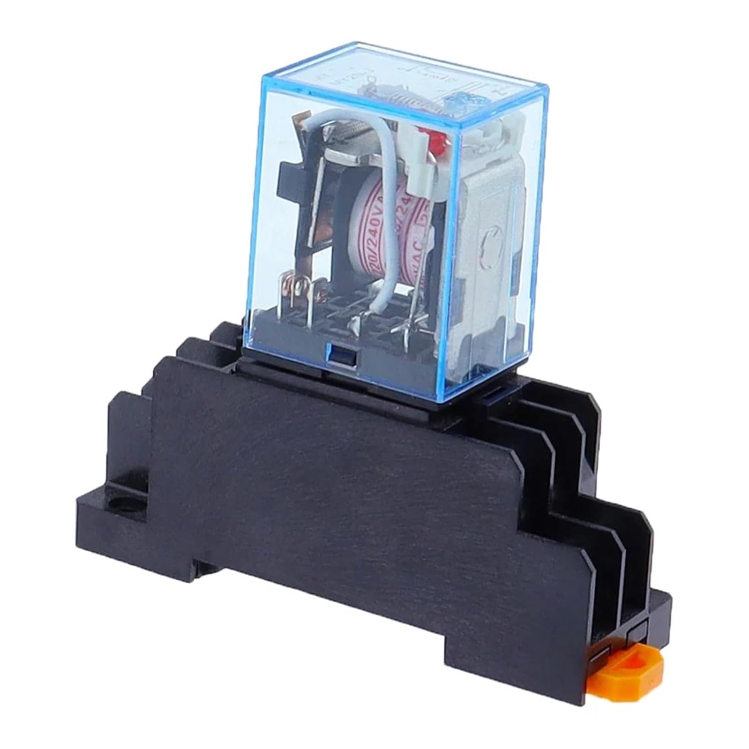 Specifications:Product Name:Power Relay + SocketModel No.:MY2NJAction Type: DPDTCoil Voltage: 110V220VAC 12V 24VDCContact Capacity:5A, 240VAC5A, 28VDCPin Quantity:8Mounting Rail Type: 35mm DIN RailOverall Size(Approx.): 7.8 x 6.5 x 2.3cm/3.1" x2.6" x 0.9"(L*W*H)Material(External): Plastic, MetalPackage Content:1 x Power Relay1 x Socket