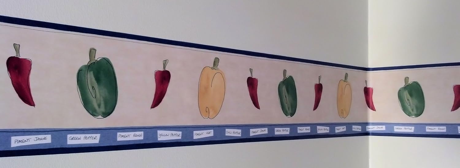 Gardening Wallpaper Border. Variety of Hot Peppers - Yellow, Green, Piment, Chili Peppers.