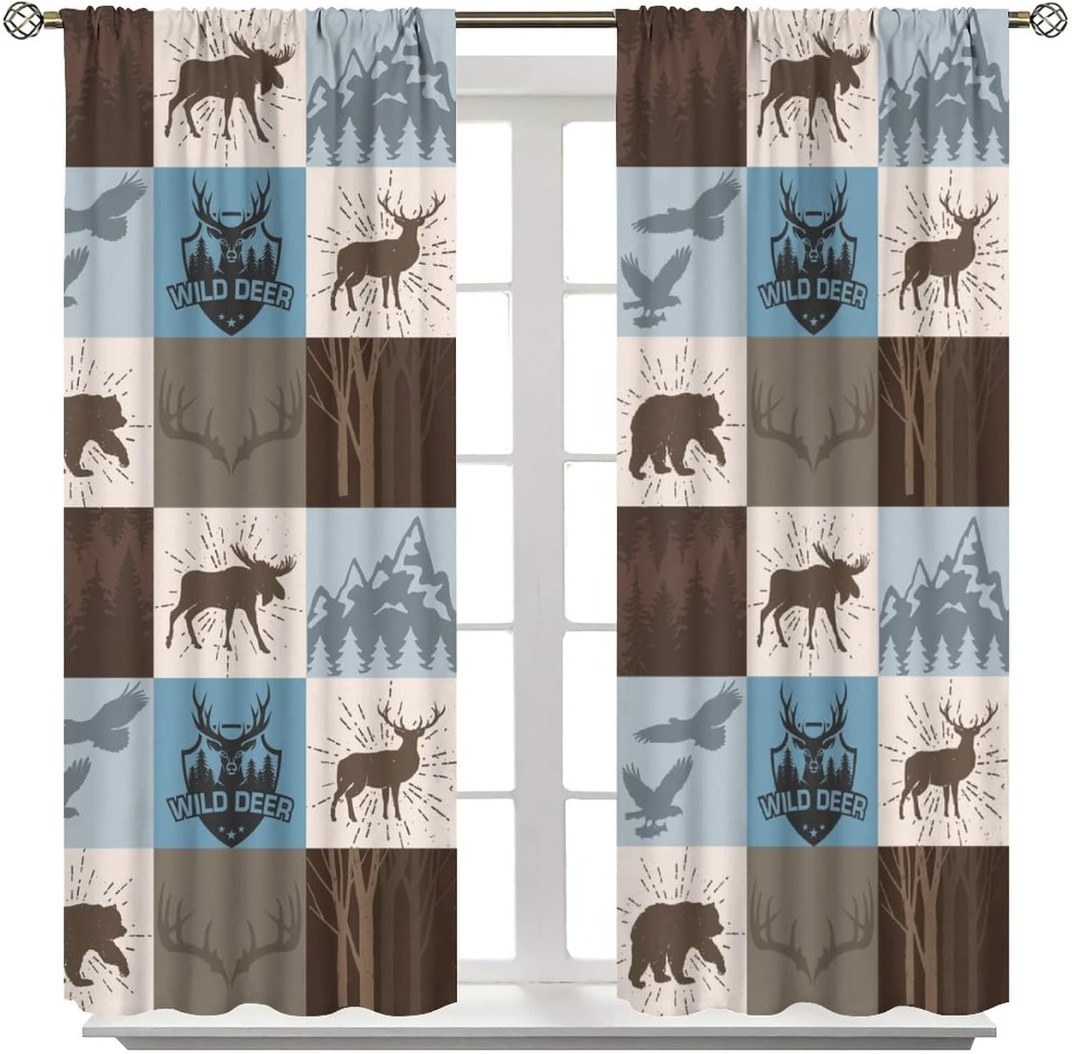 This Hunting Theme Bear Deer Curtains can block out 85%-99% sunlight and UV ray ( Darker colors work better), perfect for late sleepers and afternoon naps. Our energy saving curtains insulate against summer heat and winter chill to balance your room temperature, reduce outside noise .This Hunting Theme Bear Deer Curtains liven up your indoor or outdoor spaces with a sense of airiness and beauty.These Hunting Theme Bear Deer Curtains are suitable for the bedroom, living room, dining room, infant room, kids room, office or other public place.Material:Polyester high quality fabric curtains, warm and interesting, beautifully designed.Kindly Remind:- Don't use sharp things scratching curtains.- For proper fullness panels should slightly larger than the window size the width of your window.- 24 Hours customer support.- As different computers display colors differently, the color of the actual item may vary slightly from the above images.