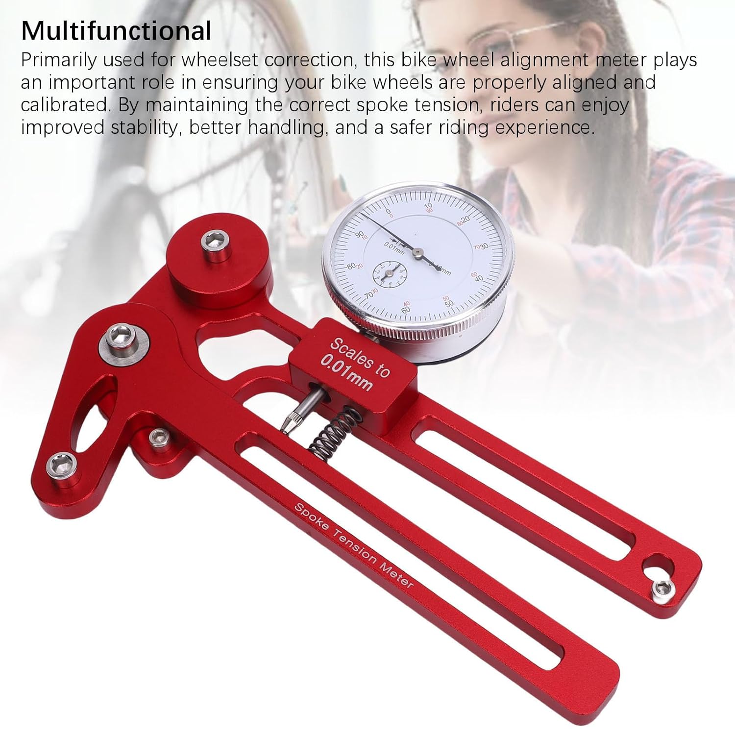 1. Long Term Use: Designed for durability and longevity, this bike wheel spoke tension meter provides an economical solution for cyclists and mechanics alike. Its robust construction ensures it can withstand frequent use. 2. Rugged Alloy Construction: Made from excellent alloy materials, this bike spoke tension adjustment meter is not only strong and rugged. Its high utility ensures consistent performance, providing cyclists with a good tool that maintains its integrity even in varying environmental conditions. 3. Fine Tension Measurement: This bike spoke tension meter is specifically designed to effectively measure spoke tension for round spokes, various spoke types, and finished wheelsets. Accurate tension readings are important for optimal wheel performance, and this tool helps ensure your spokes are well adjusted for enhanced riding experience. 4. Versatile Applications: The bike wheel rim alignment meter is widely applicable, making it suitable for a range of cycling needs. Whether you're a professional mechanic, a serious cyclist, or simply maintaining your bike at home, this tool serves as an essential part of your wheel tuning process. 5. Multifunctional: Primarily used for wheelset correction, this bike wheel alignment meter plays an important role in ensuring your bike wheels are properly aligned and calibrated. By maintaining the correct spoke tension, riders can enjoy improved stability, better handling, and a safer riding experience. Spec: Item Type: Bike Spoke Tension Meter Material: Alloy packing list: 1 x Bike Spoke Tension Meter 1 x Tension Comparison Chart