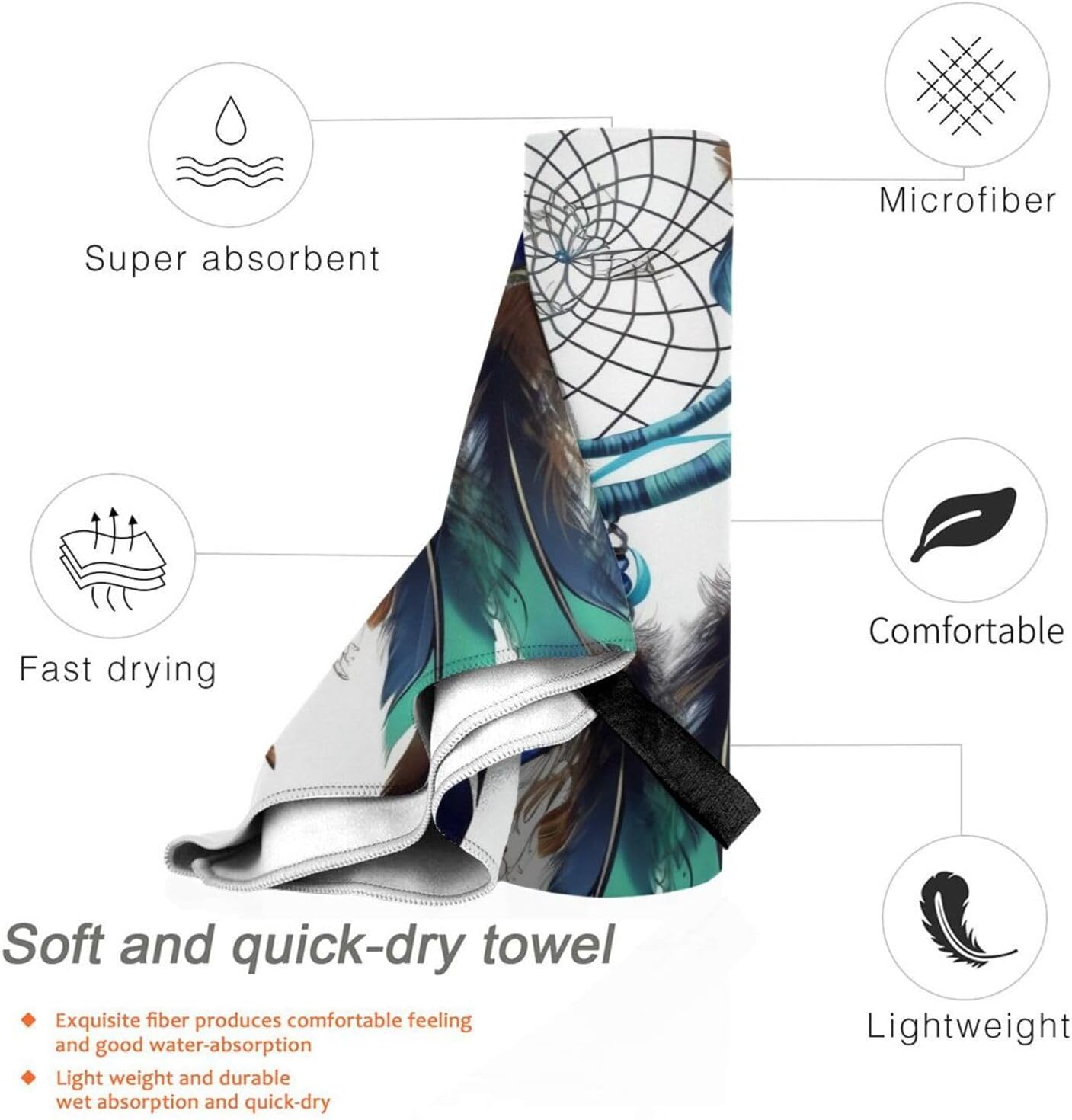 designNative Dream Catcher compact towel for camping are designed with one-sided printing. The towels are equipped with special packaging bags and carabiners, which are convenient for packaging and hanging, and can be hung anywhere to dry quicklymaterialcompact towels for swimming is made of microfiber, which is more absorbent than standard towels, dries quickly, is lightweight, and small enough to easily fit the towel into a gym bag or backpackscene cotton towel for beach carabiner on the bag, can be attached or packed into your bag, the beach towel can also be used as a sports towel, travel towel, yoga towel or used as a beach, bathing, swimming pool, swimming, boating, sunbathing, mats for spa, sauna, water park, climbing, fitness, yoga, travel, camping, hiking, picnic, travel, outdoor and sports, etccomponentbeach blanket for swimming have buckle webbing, easy to hang and air dry, pvc packaging bag, equipped with a carabiner, easy to store and carrywashinglightweight towel for swimming machine washable, wash before first use, just hand wash or machine wash, air dry