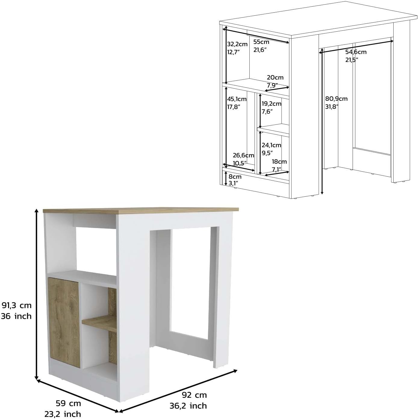 Dimensions: 36" HMaterial: Particle BoardColor: MulticolorPackage Includes: Kitchen Island UnitMounting Type: FreestandingNotes: Requires assembly; clean with damp clothEnhance your kitchen with this 36" high kitchen island featuring three open side storage shelves and one push-to-open cabinet.Designed for easy DIY assembly, the interlocking mechanism allows secure, tool- assembly while pre-drilled holes ensure precise screw placement. Clear step-by-step instructions with visual aids and QR code access provide hassle- setup. Crafted from particle board, this multicolor (white/macadamia) unit combines functionality with modern aesthetics. Its compact height and organized storage make it ideal for small kitchens, entryways, or dining areas. Wipe clean with a damp cloth for simple maintenance.