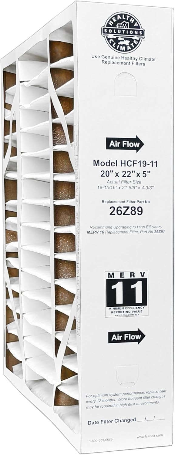 Lennox 26Z89 - 20" x 22" x 5" Healthy Climate HCF19-11 Air Filter, MERV 11. Actual Filter Size: 19-15/16" x 21-5/8" x 4-3/8"