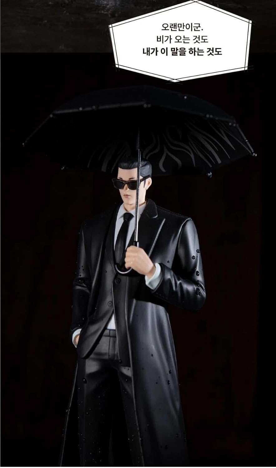 LOOKISM DANIEL PARK FIGURE / 외모지상주의 박형석 피규어 COLLECTIBLE / Character Concept Korea Webtoon / OFFICIAL MD GOODS It's been a while. Both the rain and these words of mine. POINT Recreating the legend of Gun Park in the rain. A legendary scene from the Big Deal takedown episode comes to life! From Gun Park’s umbrella, scars, and suit to the rain-soaked ground— every detail has been meticulously captured. KEY POINT The sunglasses that conceal his piercing gaze, the scars on his face that reflect his weight and presence— the essence of Gun Park is fully expressed in this one iconic moment. Experience the vivid realism of this unforgettable scene in figure form.