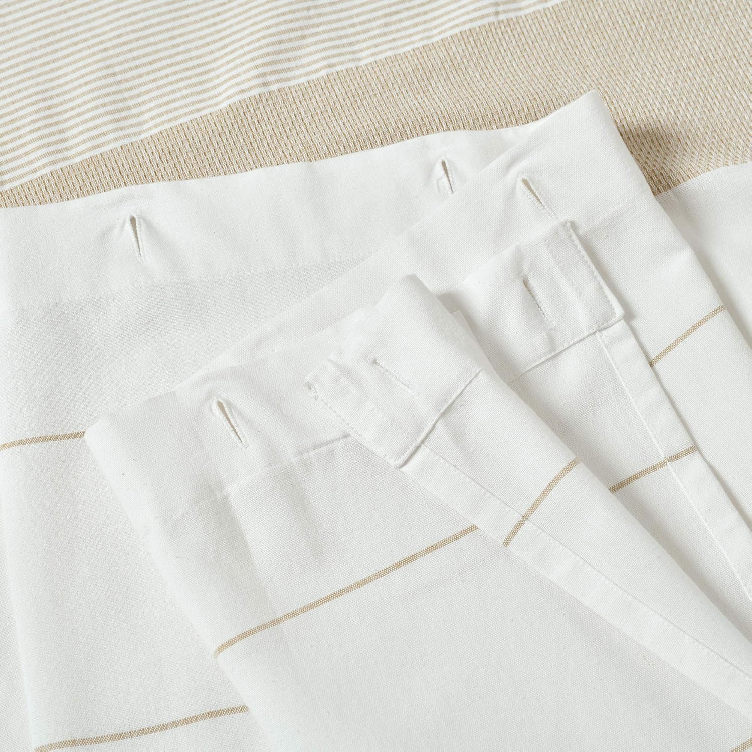 Add a touch of luxury to your bathroom with our Woven Taupe-Striped Shower Curtain. This stylish fabric shower curtain adds a bold texture to your master bathroom or guest bathroom. The minimalist design features thin horizontal stripes throughout with a band of stripes at the bottom. In addition, this bathroom curtain has tassels at the bottom for added flair. The shower curtain has a white background for a neutral and sophisticated design. Because this shower curtain is made of 100% cotton, it is extremely durable and can even be cleaned. We recommend cleaning it by washing in cold water. Hang the curtain to air dry to maintain the look and feel of these luxurious curtains. Use only non-chlorine bleach as needed. Plus, cotton fabrics breathe well and dry quickly. Each curtain measures 72" H x 72" W, so they're wide and tall enough for a standard shower or bathtub. The white fabric and neutral design blends into your space without being overwhelming. The color and design can coordinate with any bathroom design style from modern to rustic. The elegant cloth curtain features a row of small holes at the top to accommodate your shower rings or hooks. At Lush Decor, we offer a range of home products that are luxurious yet affordable. All of our products are made by a team of in-house designers who aim to create items that are functional, fashionable, and unique. Shop our line of home accessories, ranging from curtains to bedding.