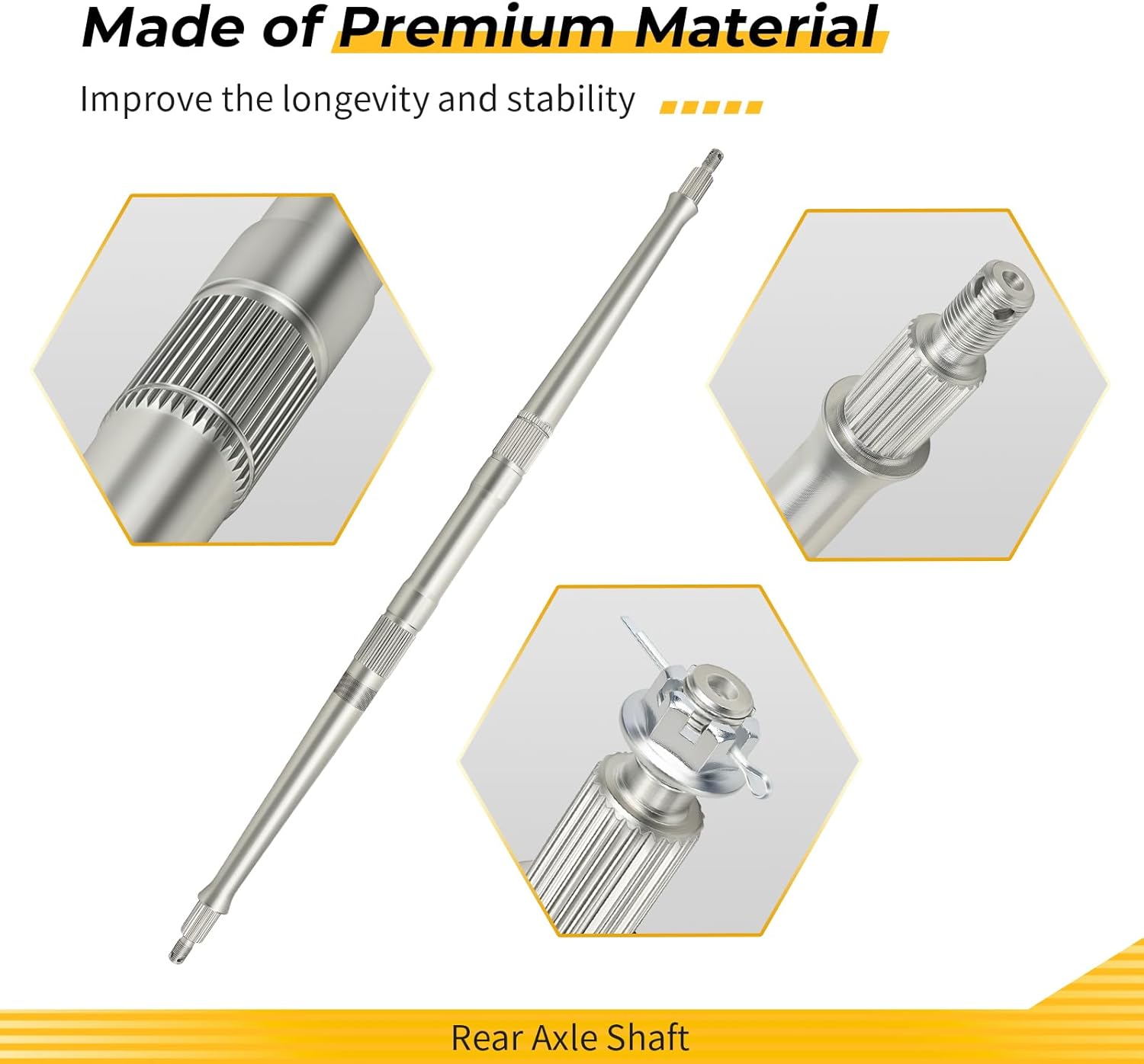 Manufacturer Part# 18P-25381-00-00 BKD-F5381-00-00 Replacement Part# 90171-16002-00 90252-03001-00 Installation position: Rear Wheel Package: Rear Axle Shaft x1 Nuts x2 Pins x2 Fit for Yamaha ATV as follows YFZ450R 2009-2024 YFZ450 2017