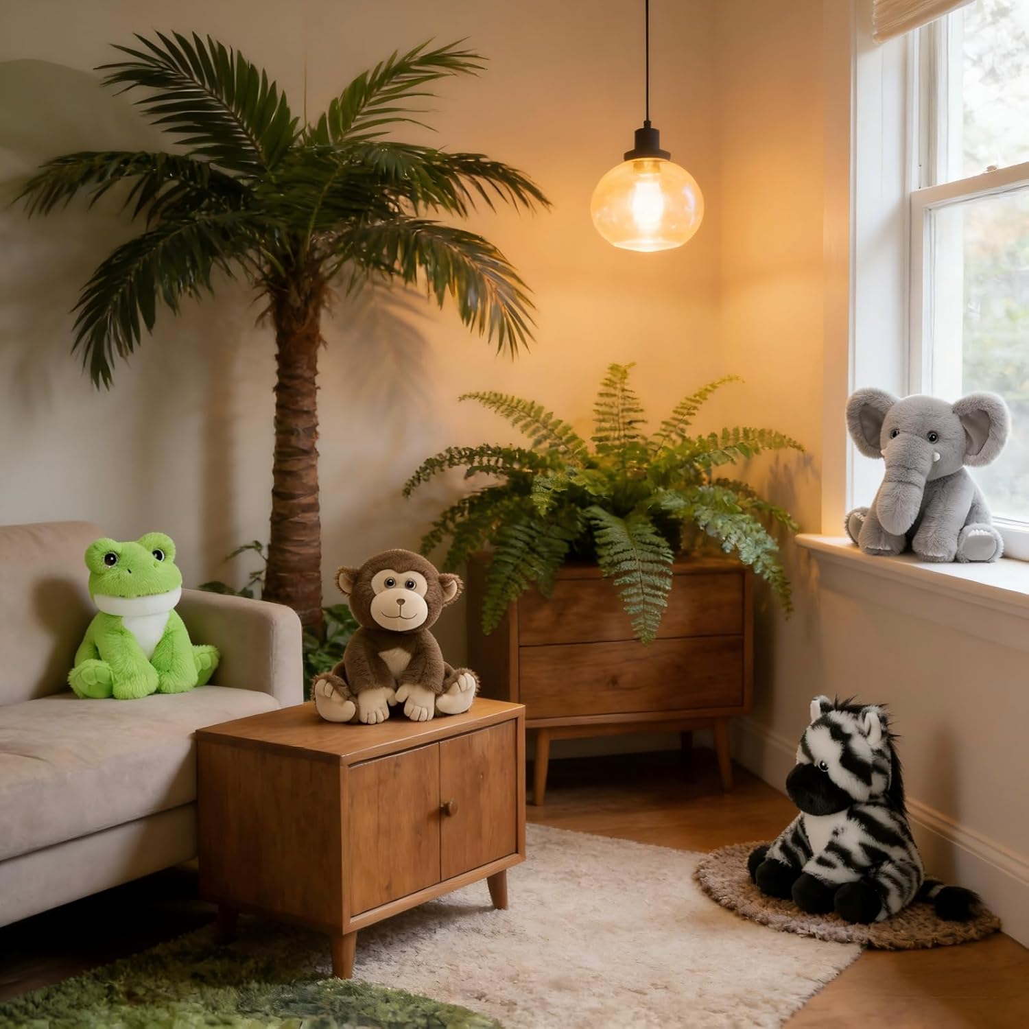 | Included Components | Monkey, Zebra, Elephant, Frog Plush |