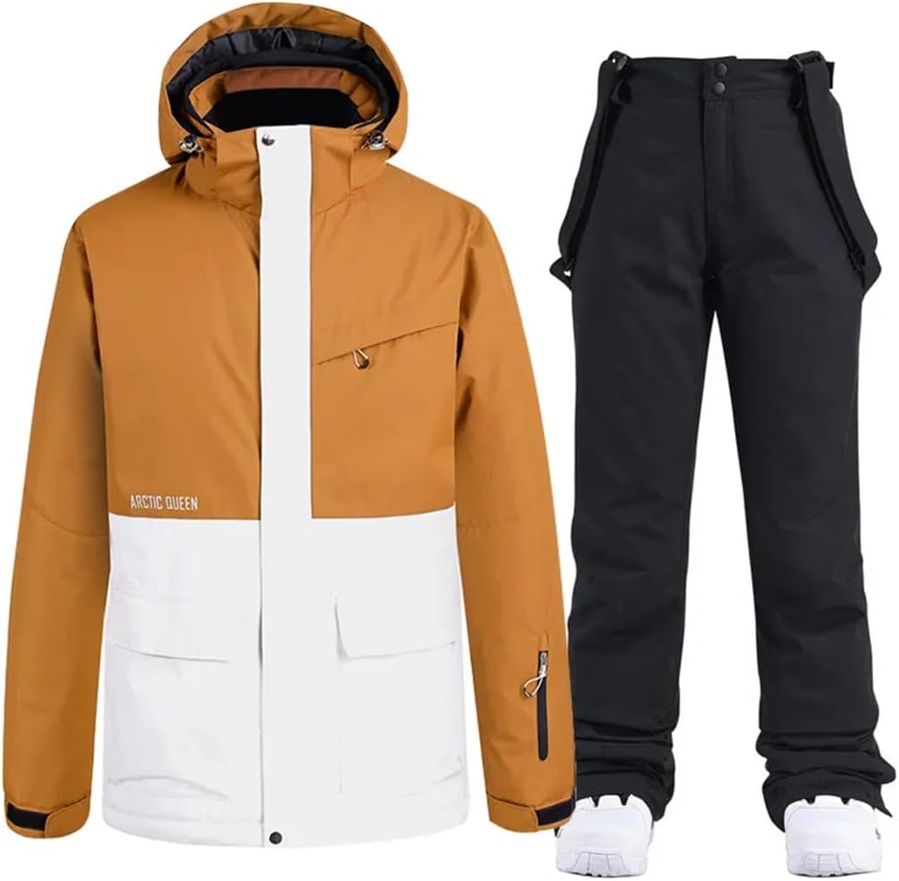 ❁❁Winter Windproof Waterproof Breathable Ski Suit for Men and Women♥♥Product DescriptionProduct name: Ski suit suit , Sling Ski PantsMaterial: 100% Cotton polyester,Space cottonFunction: Waterproof, Winproof, Breathable, Wear resistance and Warmth, Anti-static Inner Pocket Design:Two side Pockets + Cuff PocketWaterproof soft shell:warm fleece lining, removable windscreen, adjustable cuffs, warm and weatherproof, protect you from Resistant to cold rain and snow weatherApplicable Scenarios: Cycling, Ice and Snow, Extreme Challenges, Hiking, Camping, Skiing , hiking, mountaineering, hunting, fishing, camping, snowboarding, snow sports and other winter outdoor activities♥♥Jacket♥♥The professional coated fabric that makes the jacket waterproof and wear resisting.Lining and durable fabric which guarantees the best heat retention.Adjustable cuffs, stretchable glove with thumb hole help seal in warmth. Inside windproof snap powder skirt, internal drawcord hem, detachable and adjustable storm hood help to keep wind out. Wear resisting soft shell is highly wind resistant.Keep you dry and give you a more comfortable experience when you are outside♥♥Pant♥♥The pant is uniquely made with lightweight flexible materials that stretch in all directions.The multi-layered construction of the Insulated Snow Pant features advanced lightweight insulation with heat-trapping micro chambers that help keep you warmer than traditional insulation. Less bulk and more flexibility,keeps you warm without weighing you down.Attention to detail and quality include ankle, scuff and hem guards❀❀Size notes: smaller than standard, choose bigger size. Please refer to our size chart and choose the appropriate size before ordering