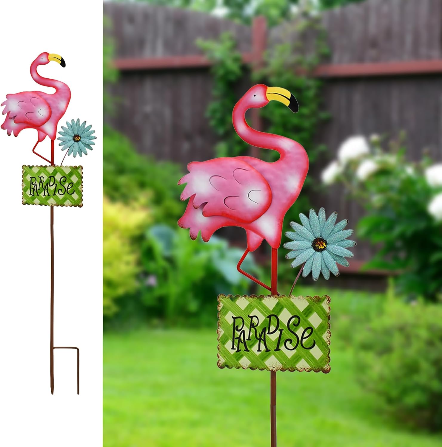 Metal Flamingo Welcome Sign Spring Garden Stake Decorative Yard Stake Pink Flamingos Lawn Art Flower Bed Decor Indoor Outdoor Decoration for Patio Backyard