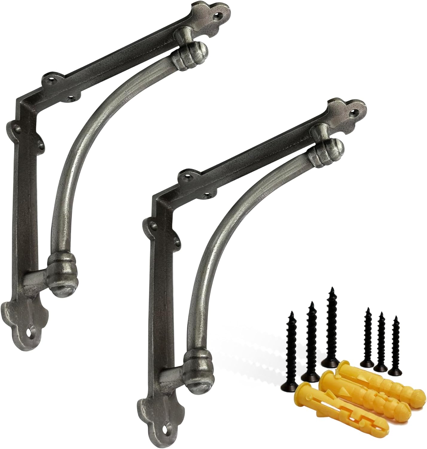 Personalize your space with rustic shelf brackets & supports! Add a decorative touch to your home with this tastefully designed heavy duty floating shelf bracket. These sturdy cast iron shelf brackets for wood shelves are ideal for using both indoors and outdoors. The design is a replica of antique metal shelf brackets used in years gone by. These rustic shelf brackets measure 9.6 x 1.7 x 9.6 inches. Create your own customized look by combining shelves of your choice, with these unique decorative shelf brackets. Search "NACH shelf brackets" on Amazon to see the complete selection of our various shelving brackets styles and sizes. We at NACH are proud of our shelf brackets & supports and we want you to love them as much as we do! if you have any questions or comments on how our countertop brackets can be better, please feel free to contact the team at NACH at admin@northamericancountryhome.