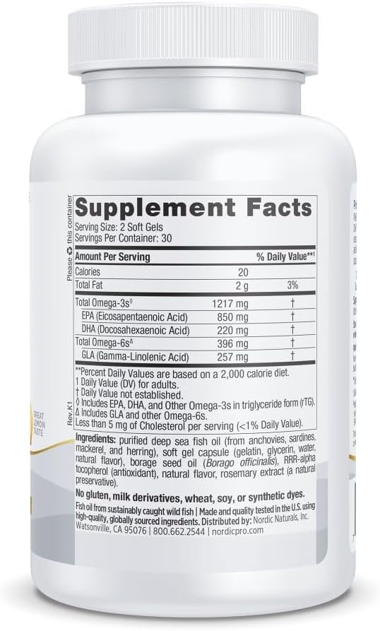 | Model Name | ProEPA with Concentrated GLA, Lemon - 60 Soft Gels - 1217 mg Omega-3 + 257 mg GLA - Heart, Neurological & Immune Support, Healthy Skin - Non-GMO - 30 Servings |