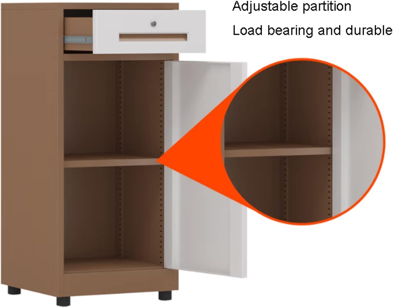 Filing Cabinet for Home Office: This multi-functional File Cabinet is perfect for storing files, supplies, and accessories for your small office or home. File Cabinet with Lock, 1 Drawers and 1 Door Storage Cabinet, Locking Filing Cabinet for Home Office Material: Metal Steel Color: Black , White , Coffee color Style: simple and modern Metal material thickness: 0.6mm Product size: 40cm× 85cm ×39cm /15.7in×33.4in×15.3in(L×H×W) Package Included: 1 x File Cabinet Notice: 1. Please check the size before buying. Due to manual measurement, an error of 0-5mm will occur. 2. Except for the file cabinet , the other accessories in the picture are not included. 3. Please note that due to different monitors, there may be slight color difference, please understand. 4. The above data is for reference only, the size is manually measured, each variable may be different, please refer to the actual product, thank you. 5. If you find any problems with our products, please feel free to contact us via email, we will solve the problem as soon as possible. 6. Welcome your sharing and feedback so that we can provide you with better products and services. 7. Thank you for visiting my shop, click to enter my shop, there will be many products for your reference.