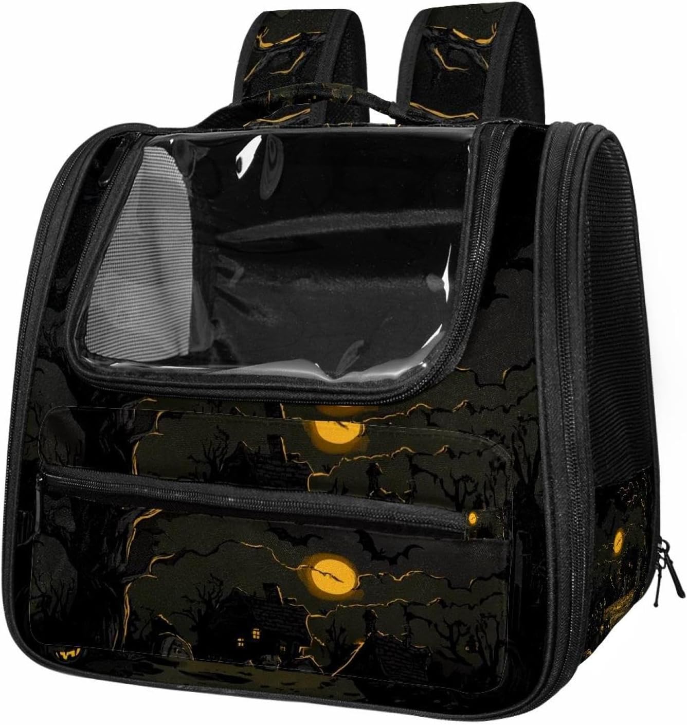 Well made: Cat Backpack Carrier is made from 900D oxford fabric, pp webbing, velvet, nylon, which is very sturdy, environmentally friendly and breathable. Not easily scratched by pet’s claws, pet backpack carrier is SAFETY & ANTI-SCRATCH. The back padding will give you a comfortable and breathable experience. Ventilated Backpack: With a breathable window in the front, this pet backpack allows cats to enjoy the sun without feeling stuffy. There are two side pockets and one big front pocket, and you can take foods or toy for your kitten pet. It is big enough for cat to turn around, and there are side pockets and hook holes, you will enjoy the greatest convenience when taking your cat out. Perfect size: Cat carrier is 15.75x9.84x13.78in/40x25x35cm. Fits most small/medium sized cat, dog, and pet. Quality fleece bed provide a comfortable place for your pet. Lightweight and easy to carry to all places. Built-in harnesses keep your naughty friends from escaping. Removable cosy mat for easier cleaning and let your pet enjoy it inside. Easy to carry: The adjustable shoulder strap of pet carrier bag help you hands-free carrying and makes it the most safe and convenient pet carrier bag for your travel. Seat belt design provide pets with safety protection throughout the trip. Pad protection keep your pets comfortable during travel. Unique Design: Innovative inside graphic design gives you a stereoscopic 3D visual experience. You also send us the photos you interest to make your unique dog or cat carrier. Pet bag is also a amazing gift for pet lover.