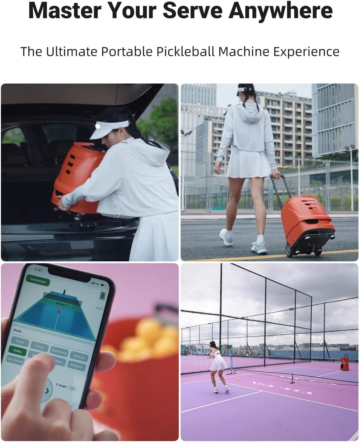 • 🔋【100+ Ball Capacity, 4-6H Battery & Portable Design】:Holds 100+ balls and delivers 4 to 6 hours of runtime for longer training sessions. The portable design with telescopic handle and large wheels makes it easy to move, store, and use on different courts.