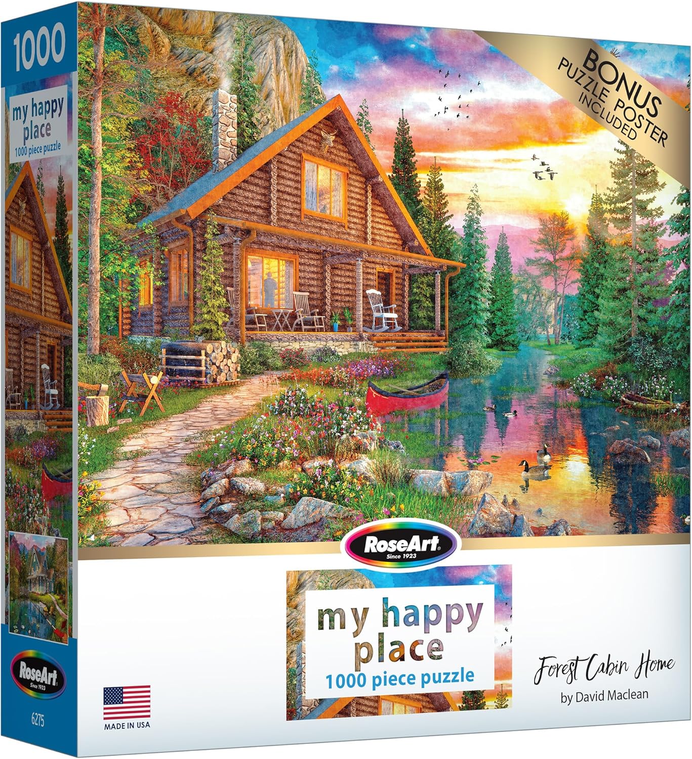 Relax and unwind with the RoseArt My Happy Place 1000-piece jigsaw puzzle, perfect for puzzle lovers who value high-quality craftsmanship and captivating designs. The breathtaking “Charles Harbor” scene features a charming lakeside cottage with a picturesque view of sailboats gracefully gliding through the harbor, creating a peaceful and inviting atmosphere. Designed with bright, vibrant, and richly detailed colors, this puzzle offers an immersive and visually rewarding experience. Each piece is precision-cut from European premium puzzle board, ensuring durability and a satisfying “snap” fit for effortless assembly. When completed, the puzzle measures 19.25" x 26.675", making it ideal for framing as wall art or enjoying as a group activity with friends and family. To enhance your puzzling experience, every box includes a bonus puzzle poster, serving as a helpful guide to bring the serene harbor scene to life. Whether you're a seasoned puzzler or new to the hobby, the RoseArt Charles Harbor puzzle is a must-have addition to your collection. It’s also a thoughtful gift for anyone who cherishes tranquil landscapes and engaging challenges. Order your RoseArt Charles Harbor Jigsaw Puzzle today and let the peaceful charm of the harbor inspire your next puzzle adventure!